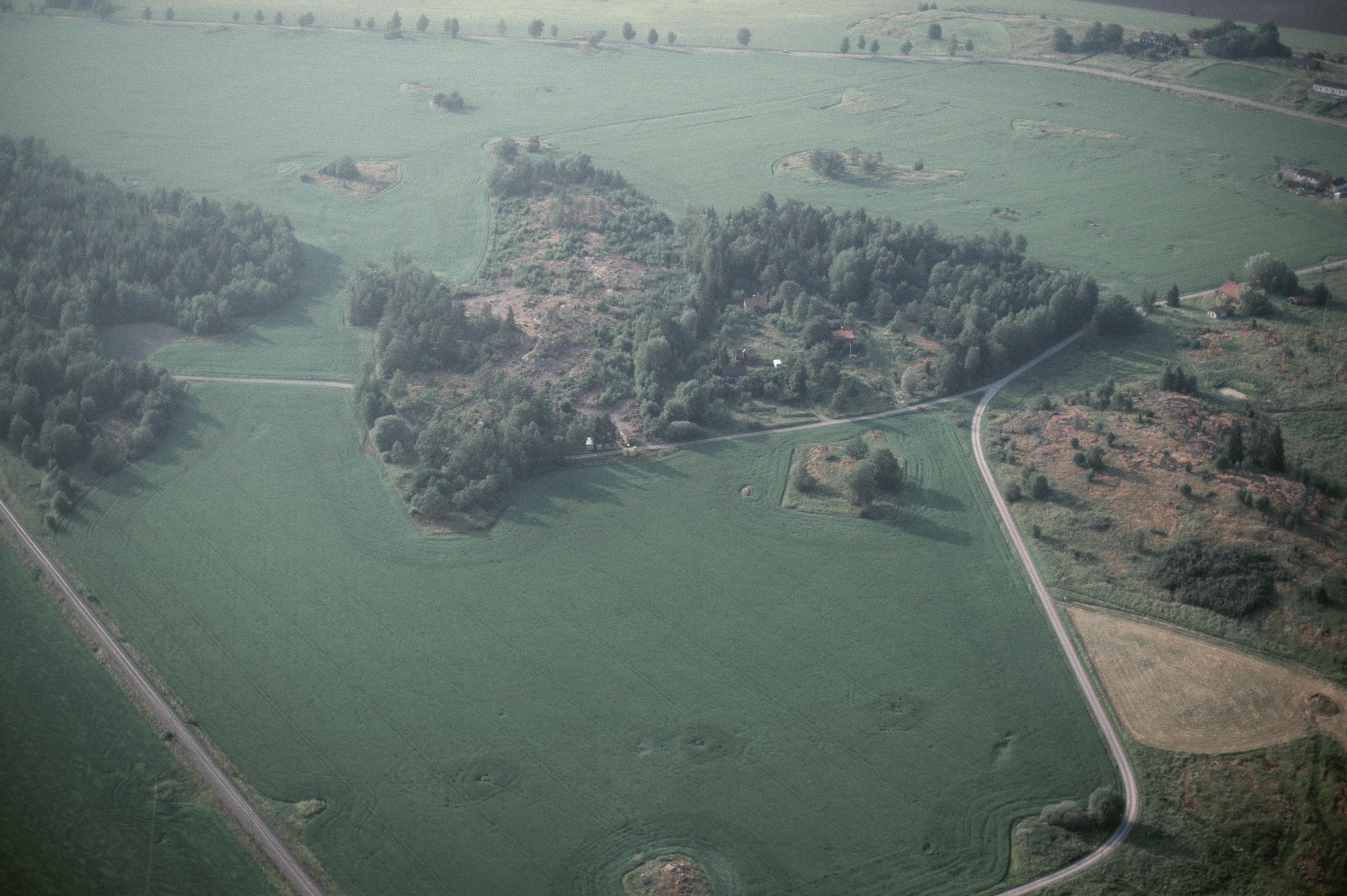 Beskrivning: Anmärkning (övrig): Riksintresse-nr/namn: C65 - Yttergran och Övergran. Socken: Häggeby, Yttergran och Övergran. Motivering: Odlingslandskap i anslutning till förhistoriska kommunikationsleder med omfattande fornlämningsmiljöer samt by- och herrgårdsmiljöer. - Uttryck för riksintresset: Skärvstenshögar, hällristningar skålgropar, rösen och stensättningar från bronsålder. Gravfält och enstaka gravar från äldre och yngre järnålder. Ålderdomligt vägnät med flera runstenar, främst de s.k. Ingvarsstenarna vid Varpsund och Ekilla, medeltida kyrkomiljöer, Brunnsta bymiljö, flera övergivna bytomter samt herrgårdarna Gran, Katrinedal och Vi med byggnader från 1700- och 1800-talen. [Texten uppdaterat av Riksantikvarieäm(…) Texten i detta fält har förkortats vid migrering till e-arkivet. Se filbilagan extra.xml för fullständig information under note_archivist. Beskrivning: Arkeologiska undersökningar innan bygge av väg E18 vid Apalle, Högsta och Pollista. Vid bildens mitt gravfält Dragonbacken RAÄnr Övergran 9:1, Pollista gamla tomt Övergran 228:1, boplats RAÄnr Övergran 270:1 m.fl. Bilden är tagen mot (väderstreck): NV Fotosyfte: Flygbildsdokumentation