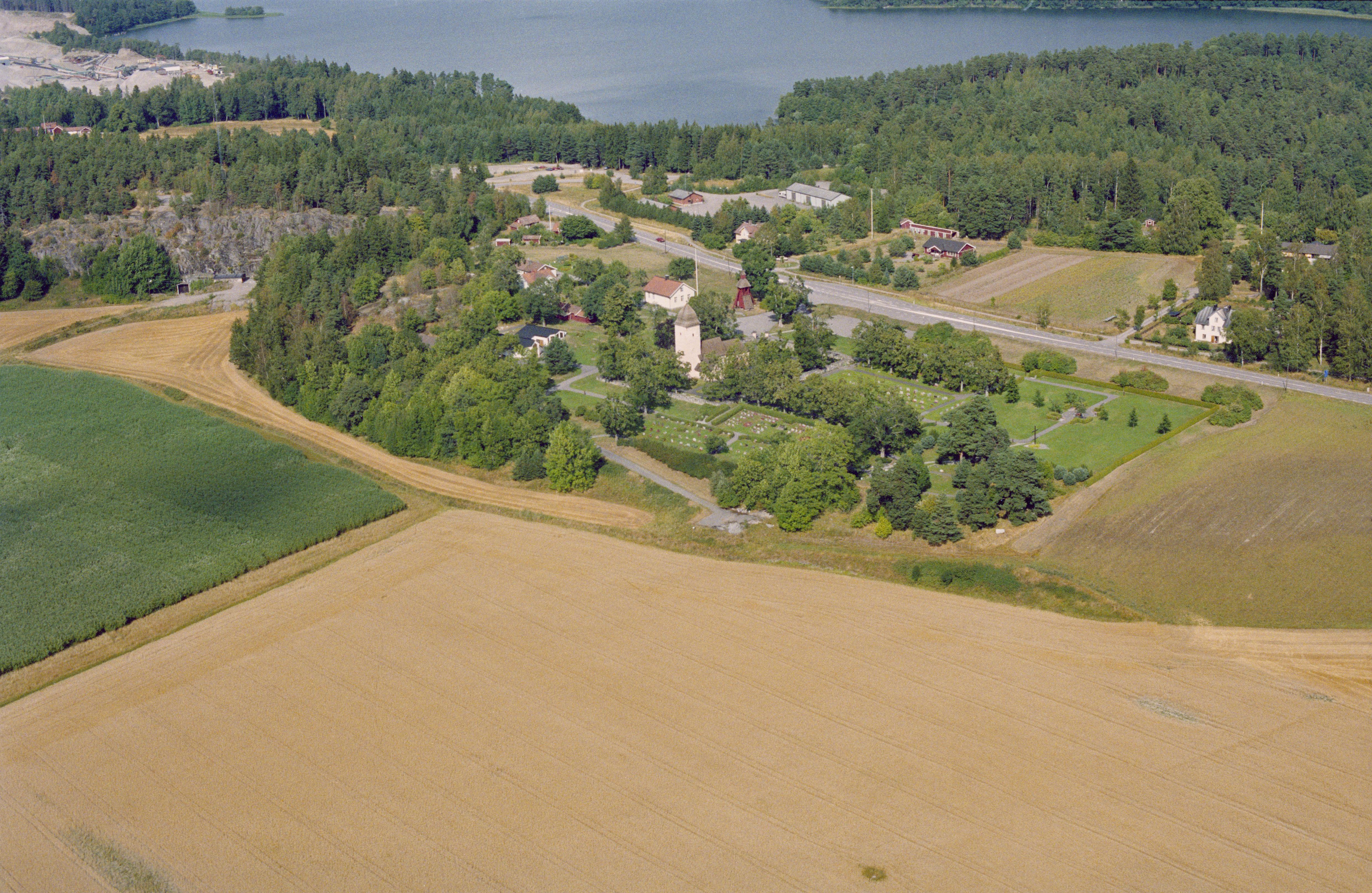 Beskrivning: Yttergrans kyrka och kyrkby vid Ullsfjärden. Ekillaåsen i Ullfjärden i bildens övre kant. Bilden är tagen mot (väderstreck): NO