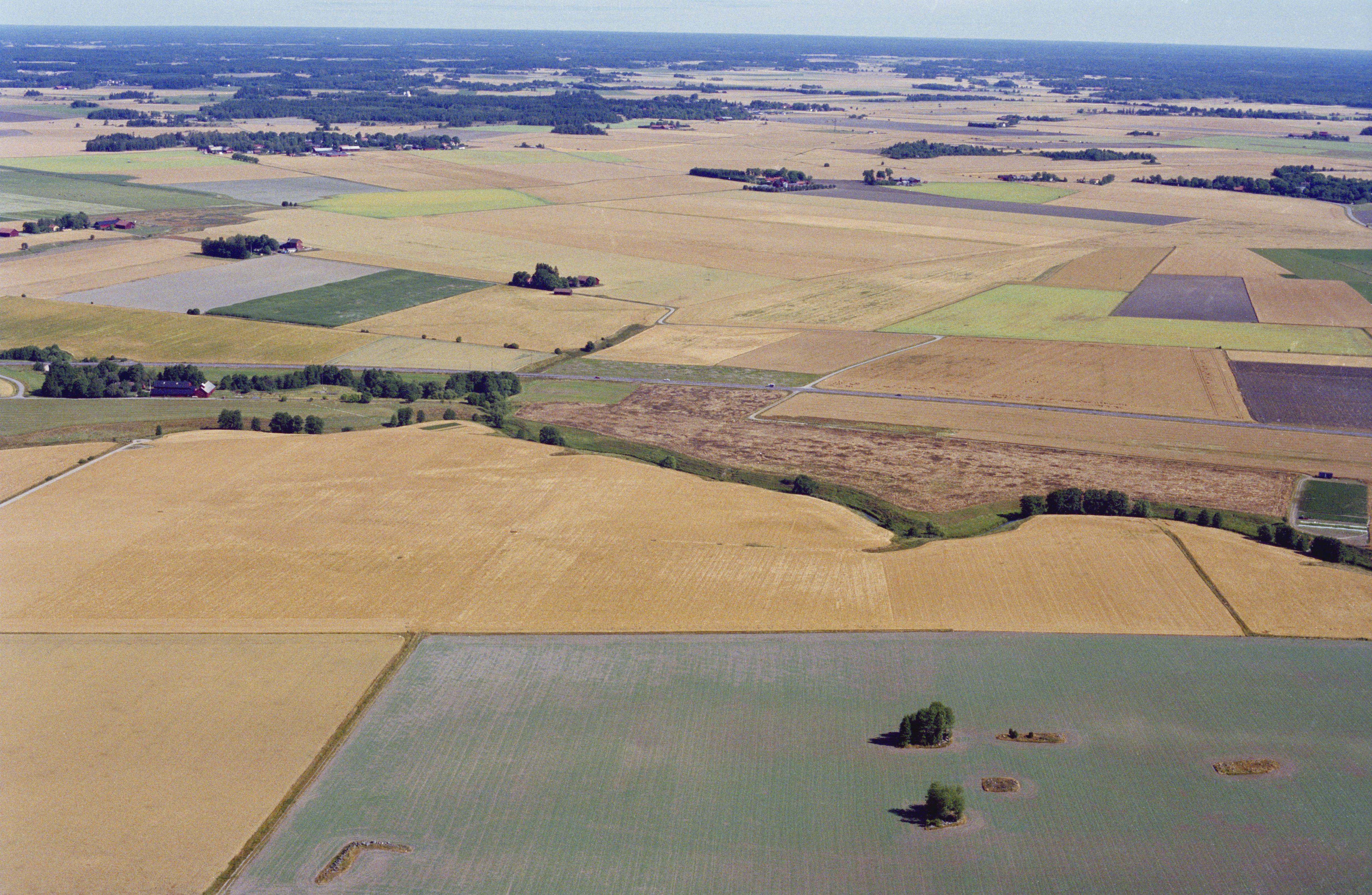 Beskrivning: Uppsalaslätten vid Ekeby i Broby, mot Åkerby socken och vidare mot Bälinge socken. Till vänster område vid gravfält RAÄnr Börje 61:1. Längs bildens mitt Jumkilsån som markerar gränsen mot Åkerby socken. Bilden är tagen mot (väderstreck): NO