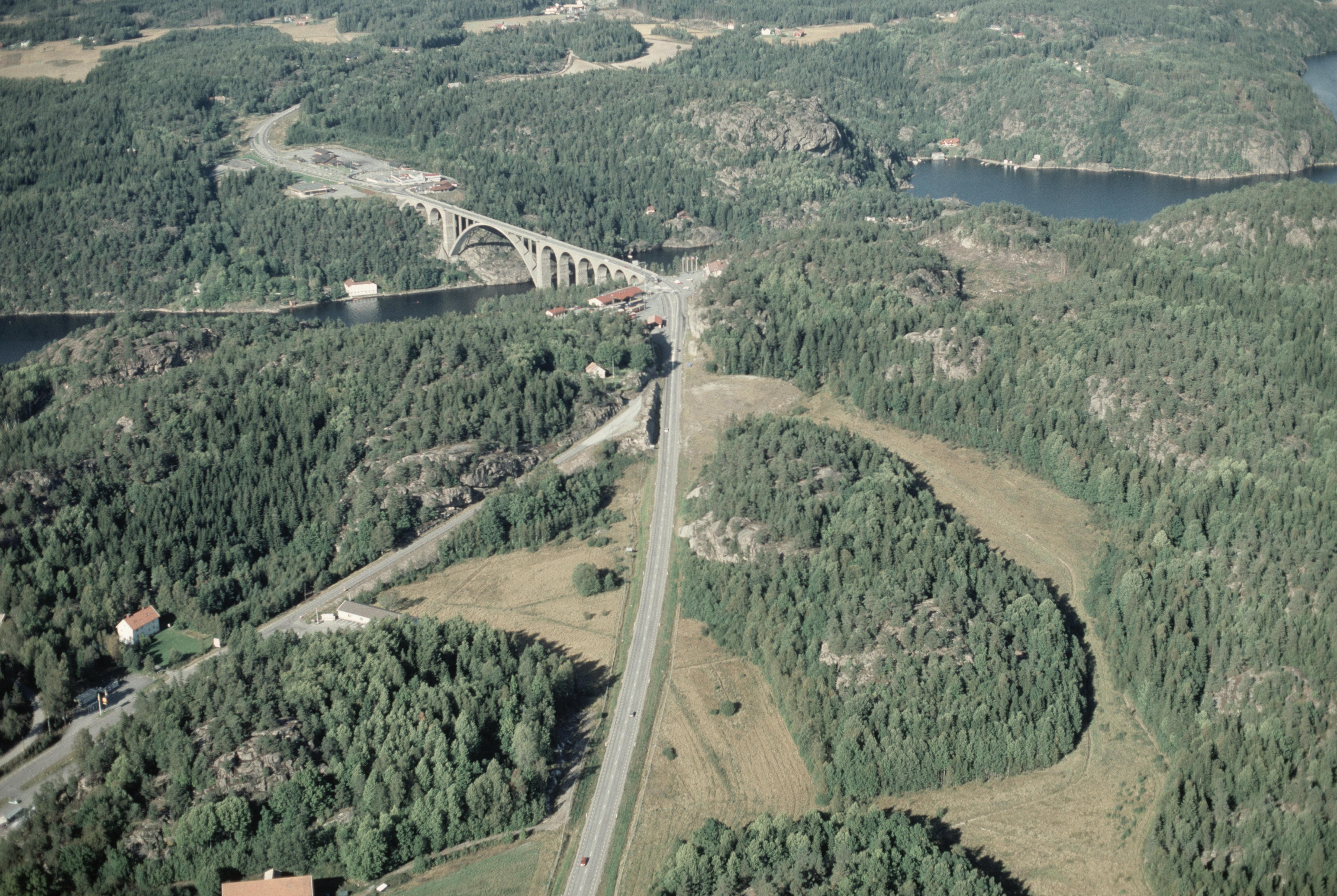 Beskrivning: Svinesundsbron på landgränsen mot Norge (i bildens övre del). Sedan 1600-talet gränsort med befästningsanläggningar, bl.a. RAÄnr Hogdal 474. Bilden är tagen mot (väderstreck): NNO