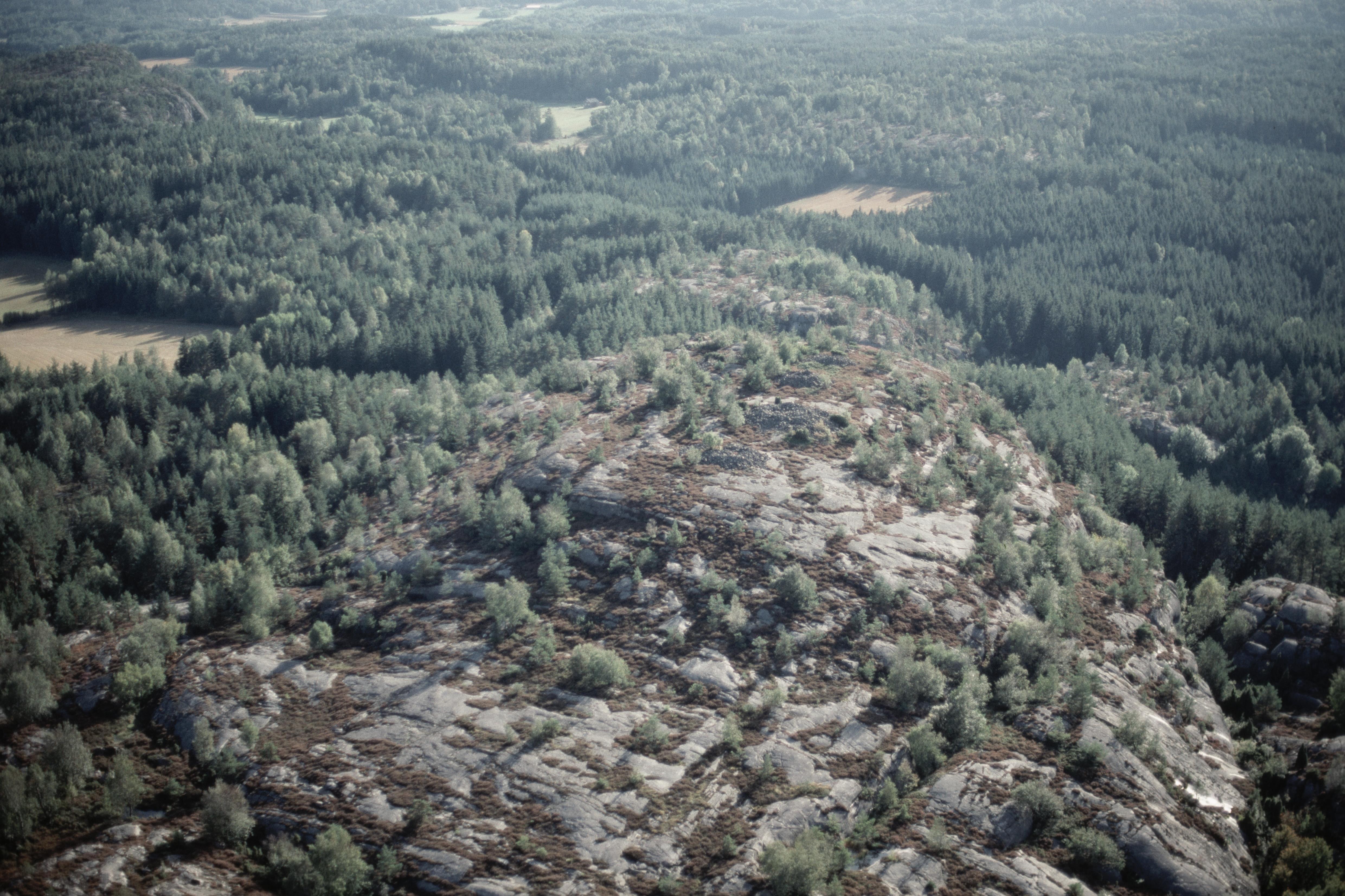 Beskrivning: Rösegravfält RAÄnr Kville 269:1 sydost om Kalleby. Bilden är tagen mot (väderstreck): SV