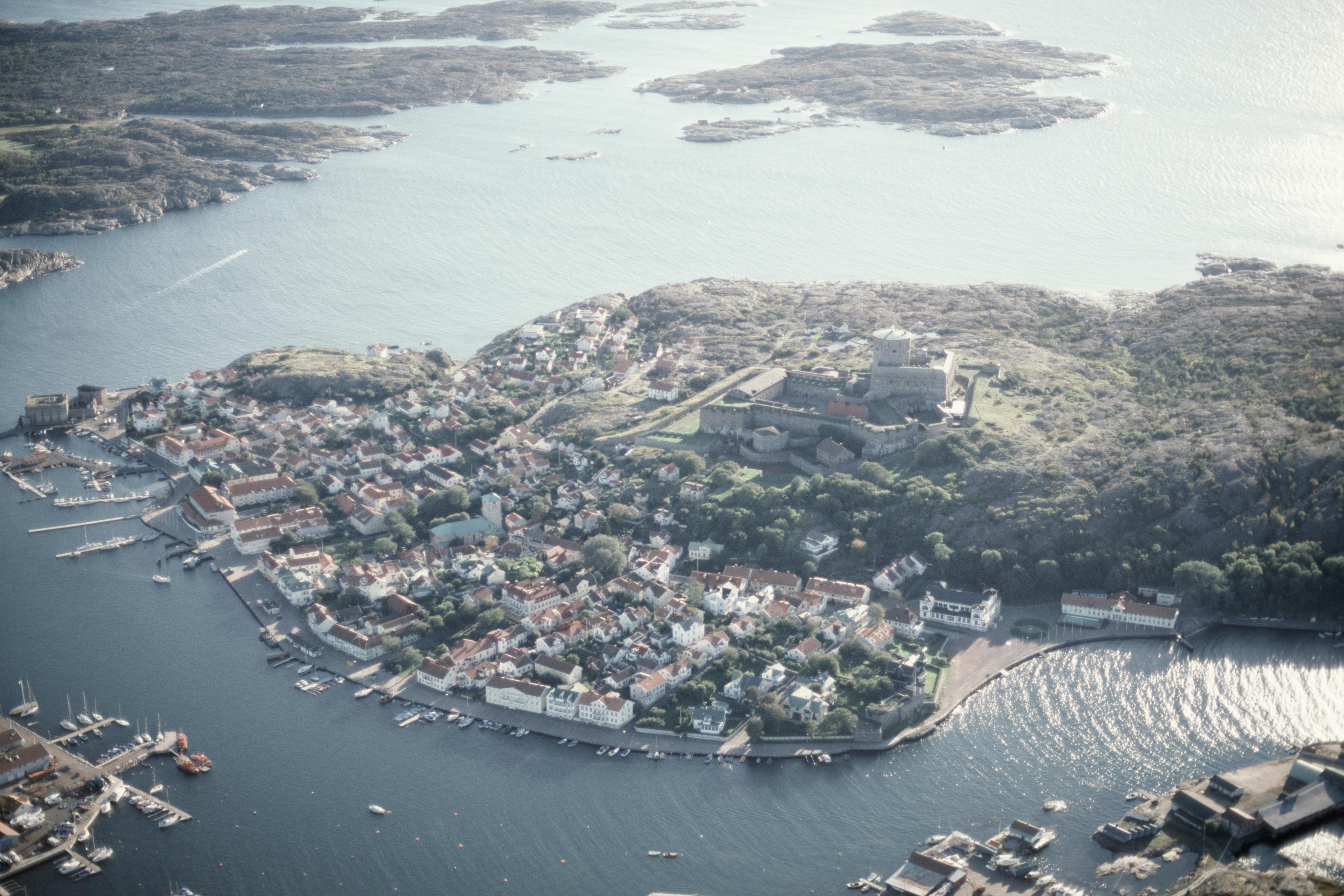 Beskrivning: Anmärkning (övrig): Riksintresse-nr/namn: O14 - Marstrand. Socken: Marstrand. Motivering: Småstadsmiljö av medeltida ursprung i skydd av Carlstens fästning, som visar utvecklingen från betydelsefull handelsplats och militär stödpunkt i en orolig gränsbygd, till fashionabel kunglig badort under 1800-talets andra hälft. (Fästningsmiljö). - Uttryck för riksintresset: Bevarade drag av medeltidens planmönster och regleringar under 1600-talet och senare. Gatunät, tomtfigurer, öppna platser. Försvarsanläggningarna, främst Carlstens fästning från 1600-talet med utanverk från 1834-57. Kyrka med medel-tida anor, rådhus och bostadsbebyggelse i trä från 1700-och 1800-talen. Badorts-epokens byggnader och miljöer. Gaturumme(…) Texten i detta fält har förkortats vid migrering till e-arkivet. Se filbilagan extra.xml för fullständig information under note_archivist. Beskrivning: Marstrands stad. Vid bildens mitt Carlstens fästning (skrivs även Karlsten). Marstrands kyrka till vänster om bildens mitt. Bilden är tagen mot (väderstreck): SV Fotosyfte: Flygbildsdokumentation