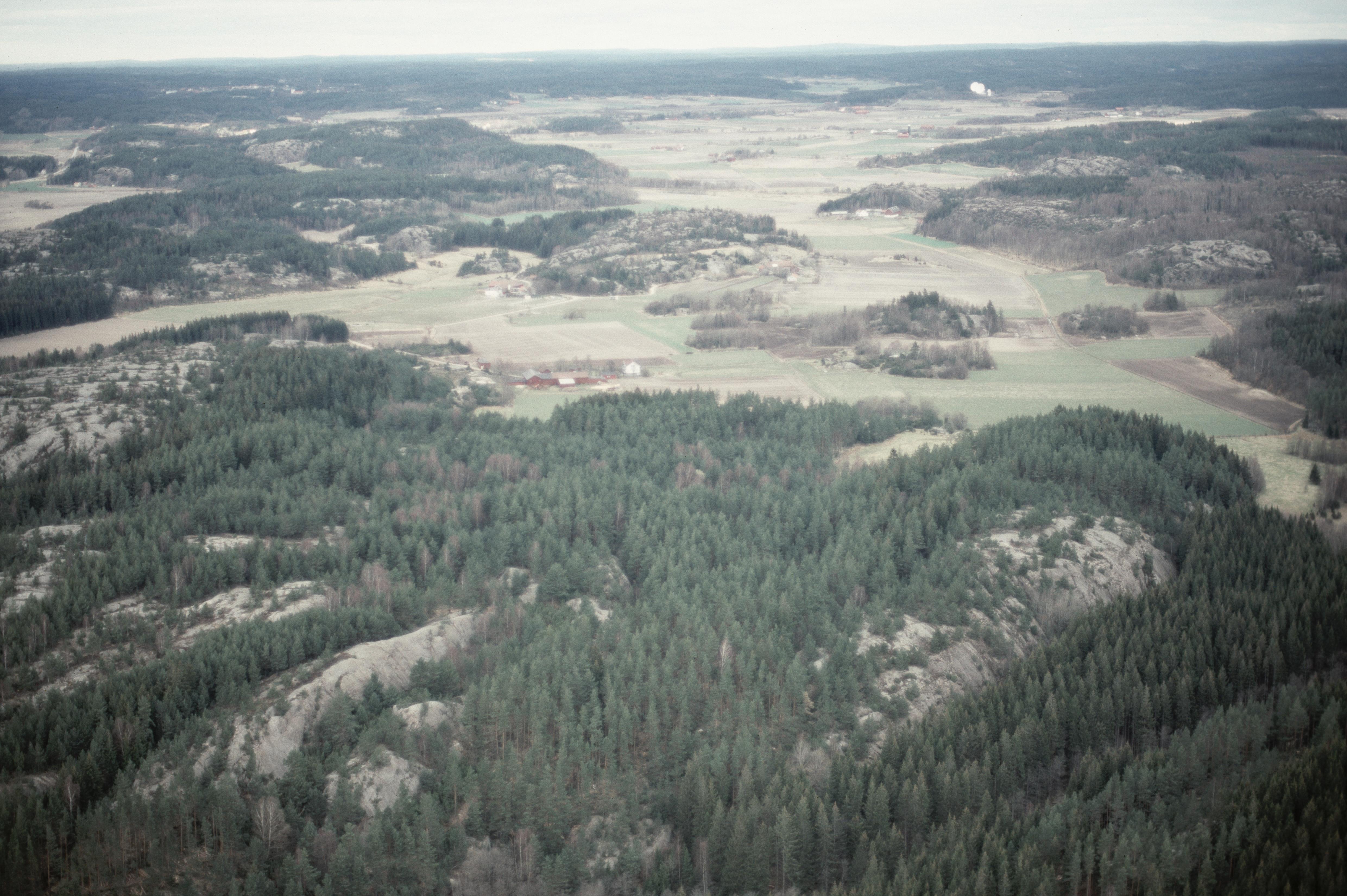 Beskrivning: Tanumsslätten. Hällristningsområde i fornlämningsrik dalgångsbygd. Hällristningar i Kalleby (i Kville och Tanums socknar). Hällristningar RAÄnr Tanum 422:1, 507:1 m.fl. Bilden är tagen mot (väderstreck): N