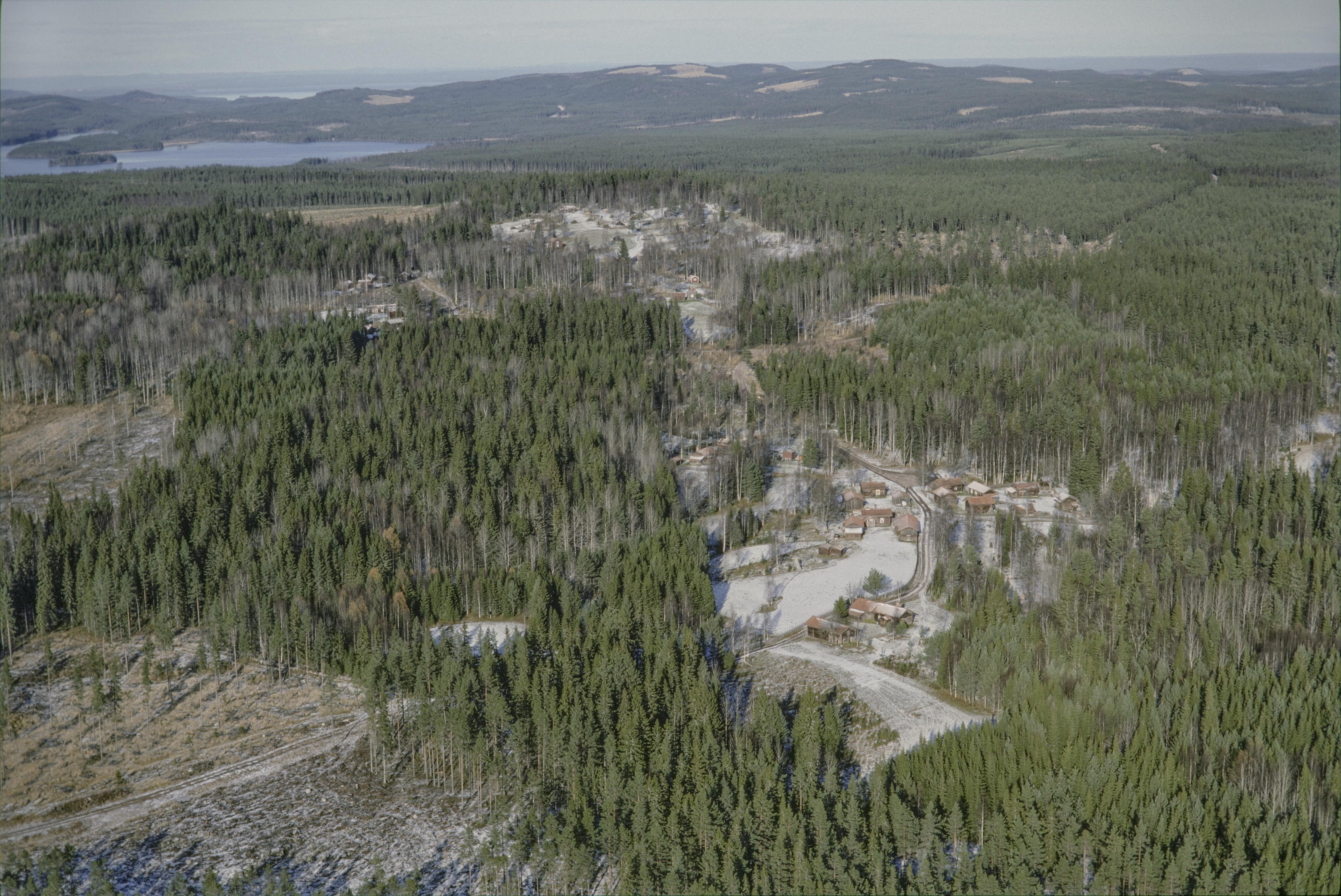 Beskrivning: Fäbodsbyn Ljusbodarna med fäbodarna RAÄnr Leksand 513:1-8. Fäbod RAÄnr Leksand 513:8 under bildens mitt. Vandringsvägen Romboleden mot Skinnaråsen till höger. Sjön Ejen uppe till vänster. Bilden är tagen mot (väderstreck): NNO