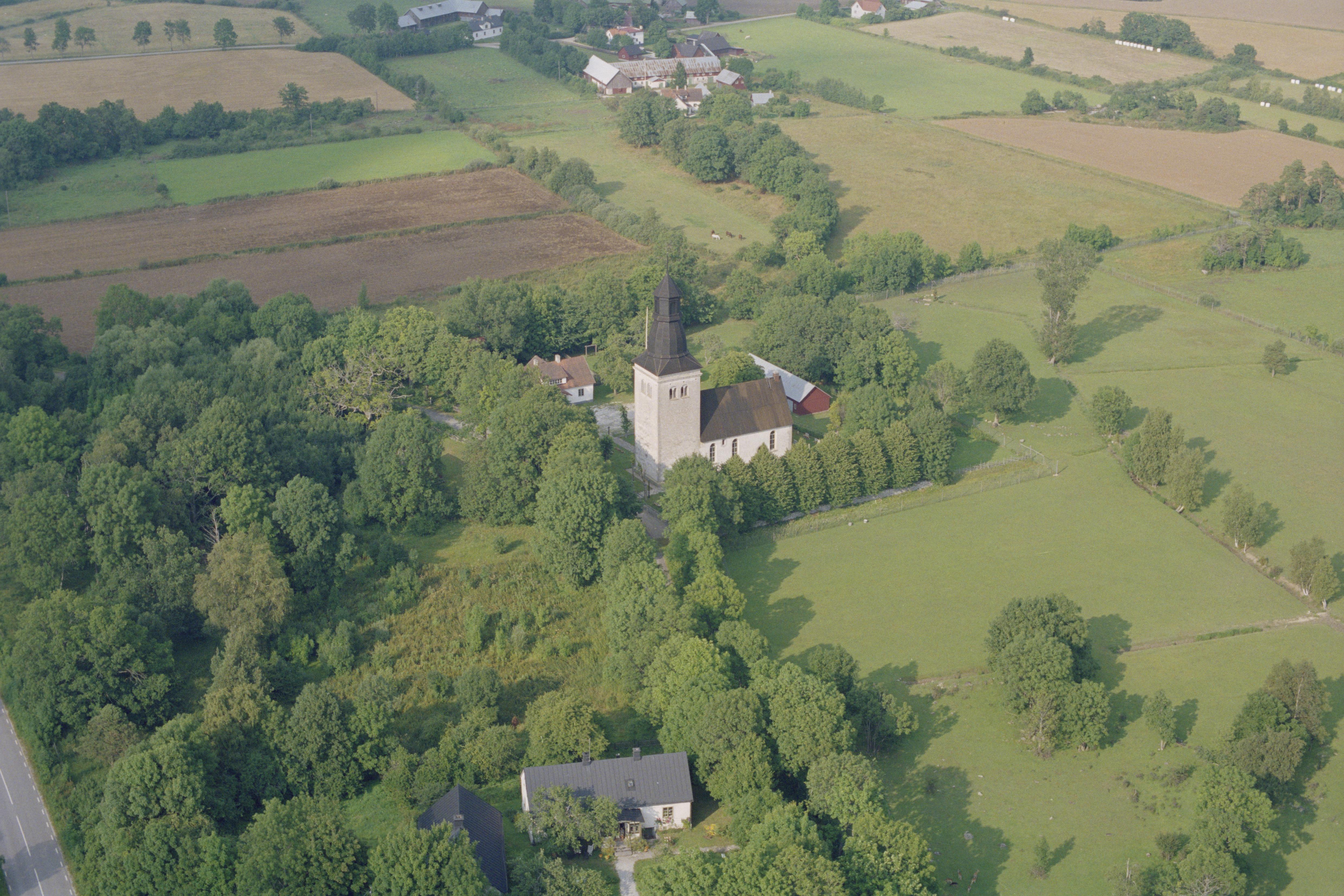 Beskrivning: Ala kyrka. Vid kyrkan bytomt RAÄnr Ala 123. Bilden är tagen mot (väderstreck): NNO