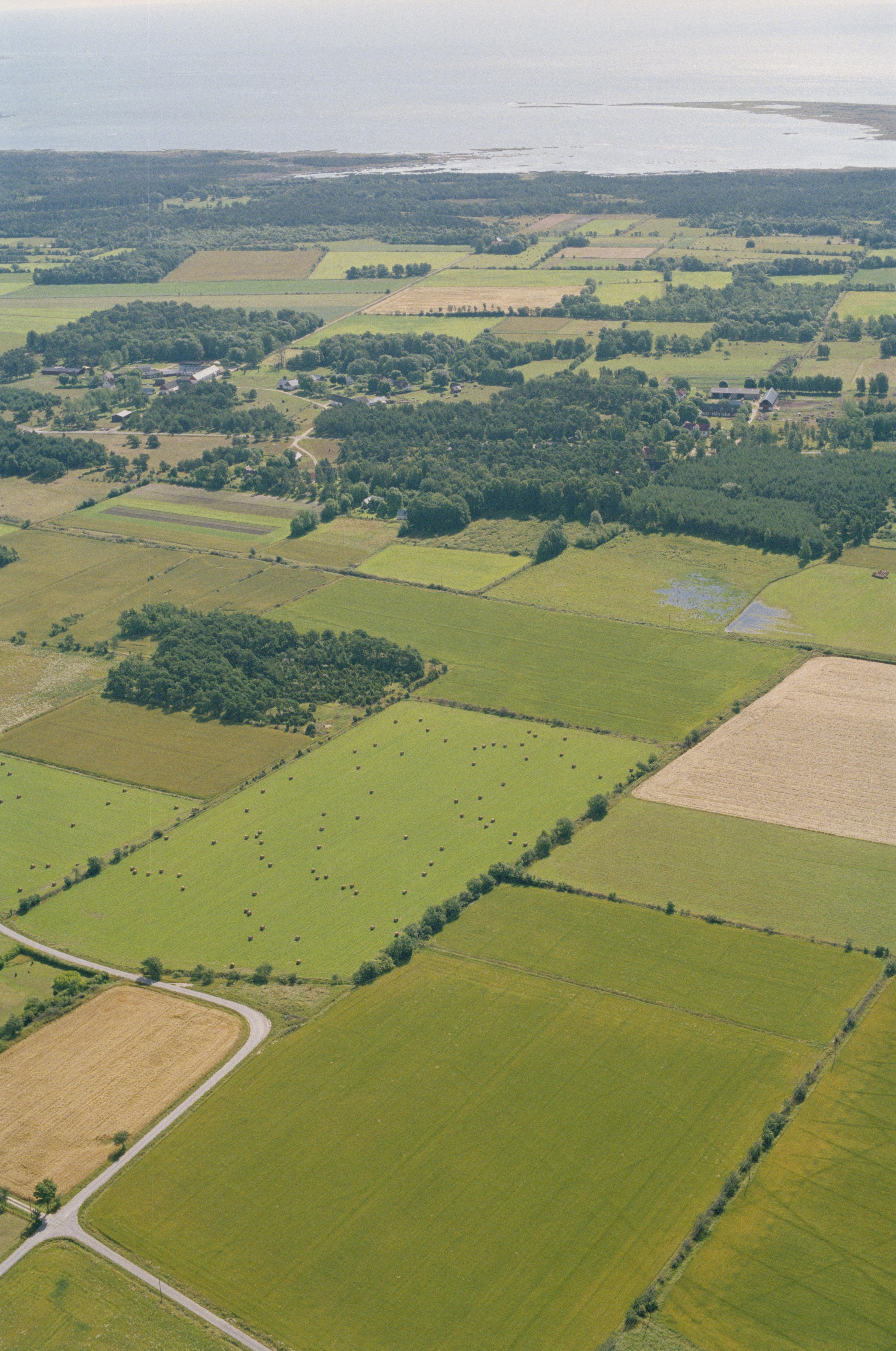 Beskrivning: Fornlämningsområdet Bandlundeviken. Över bildens mitt området Strandhagen med stensättningar RAÄnr Burs 182:1-2 och stenar med slipyta Burs 180:1, 188:1, 192:1 m.fl. Näset Hummelbosholm skymtar uppe till höger. Gränsen mot Rone socken i bildens nedre del. Bilden är tagen mot (väderstreck): SO