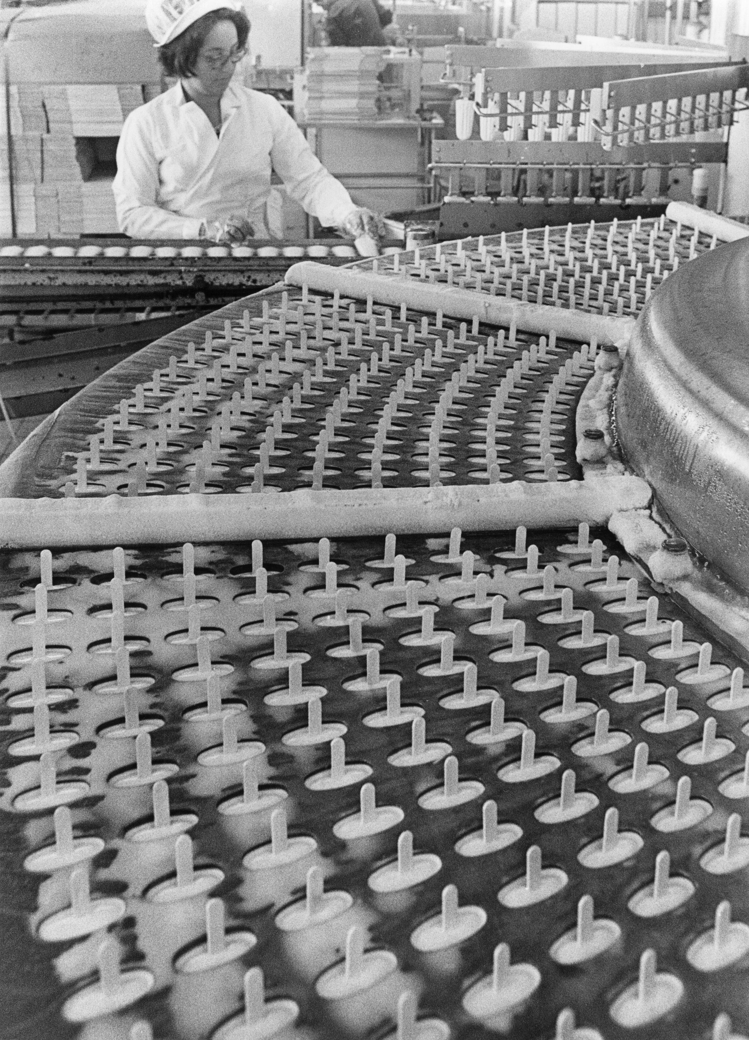 Glasstillverkning. Bilden troligen från omkring 1970.