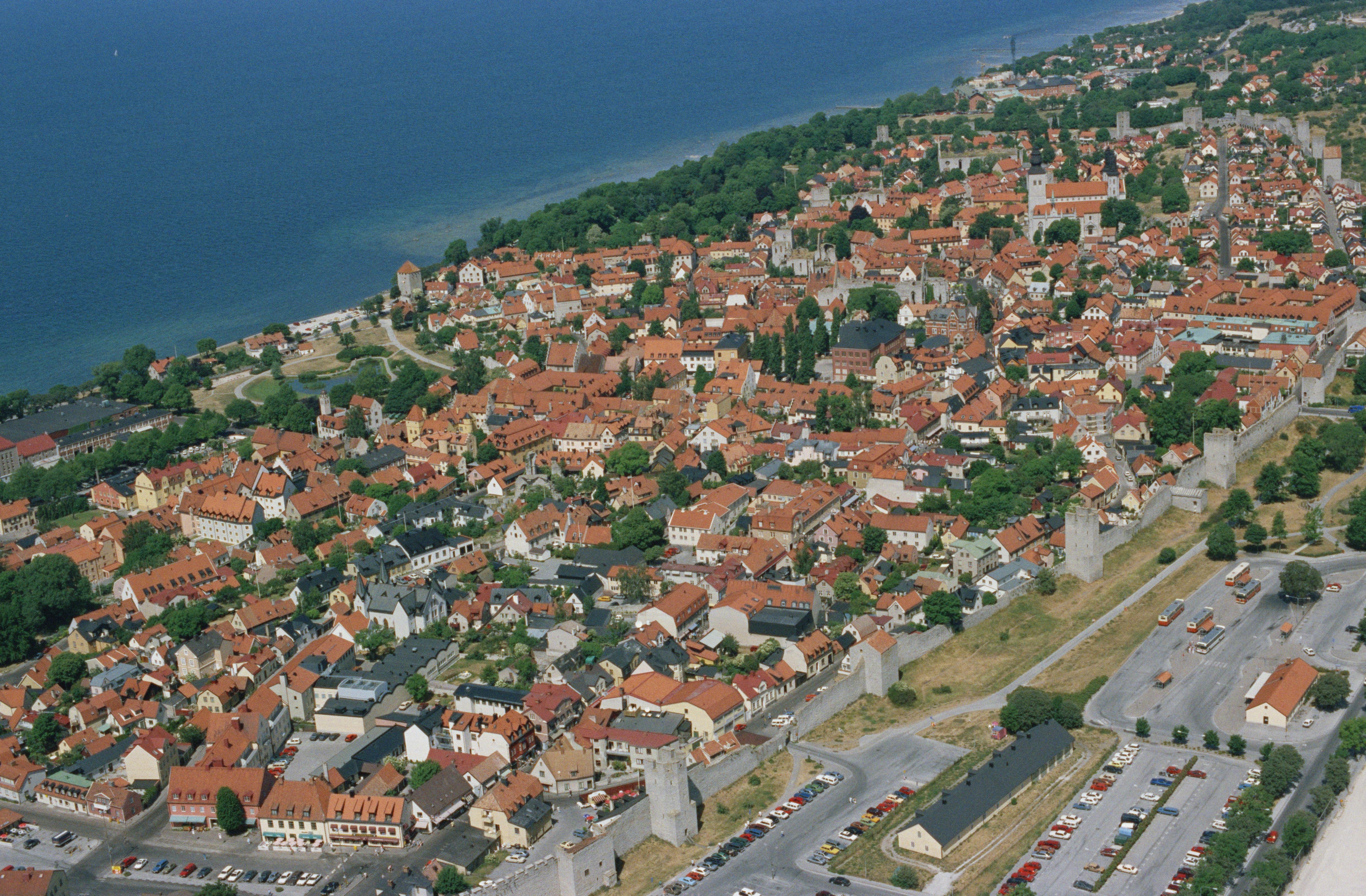 Beskrivning: Anmärkning (övrig): Riksintresse-nr/namn: I20 - Visby. Socken: Visby. Motivering: Unik tidigmedeltida muromgärdad stad, Östersjöhandelns ledande metropol t.o.m. 1200talets slut. Hansans födelsestad som i planmönster och bebyggelse ännu väl speglar handel, hantverk och sjöfart samt stadens förvaltningsfunktioner och sociala förhållanden från medeltid fram till modern tid.(Stadsmiljö, Fornlämningsmiljö). - Uttryck för riksintresset: Medeltida gatunät och tomtstruktur i det centrala stadsområdet och ett nät av infartsvägar utanför detta. Mariakyrkan, kyrkoruiner och medeltida stenhus. Försvarstornet Kruttornet vid platsen för den medeltida hamnen samt ringmuren med vallgravar och en obebyggd zon där utanför. Lämn(…) Texten i detta fält har förkortats vid migrering till e-arkivet. Se filbilagan extra.xml för fullständig information under note_archivist. Beskrivning: Visby stad. Visby innerstad med Visby ringmur i stadslager RAÄnr Visby 107:1. Uppe till höger kyrkoruin Sankta Katarina RAÄnr Visby 57:1, Visby domkyrka, kyrkoruinerna Drotten RAÄnr Visby 58:1, Sankt Lars RAÄnr Visby 59:1, Sankt Klemens RAÄnr Visby 56:1, Sankt Nikolaus RAÄnr Visby 53:1 m.fl. Bilden är tagen mot (väderstreck): NV Fotosyfte: Flygbildsdokumentation