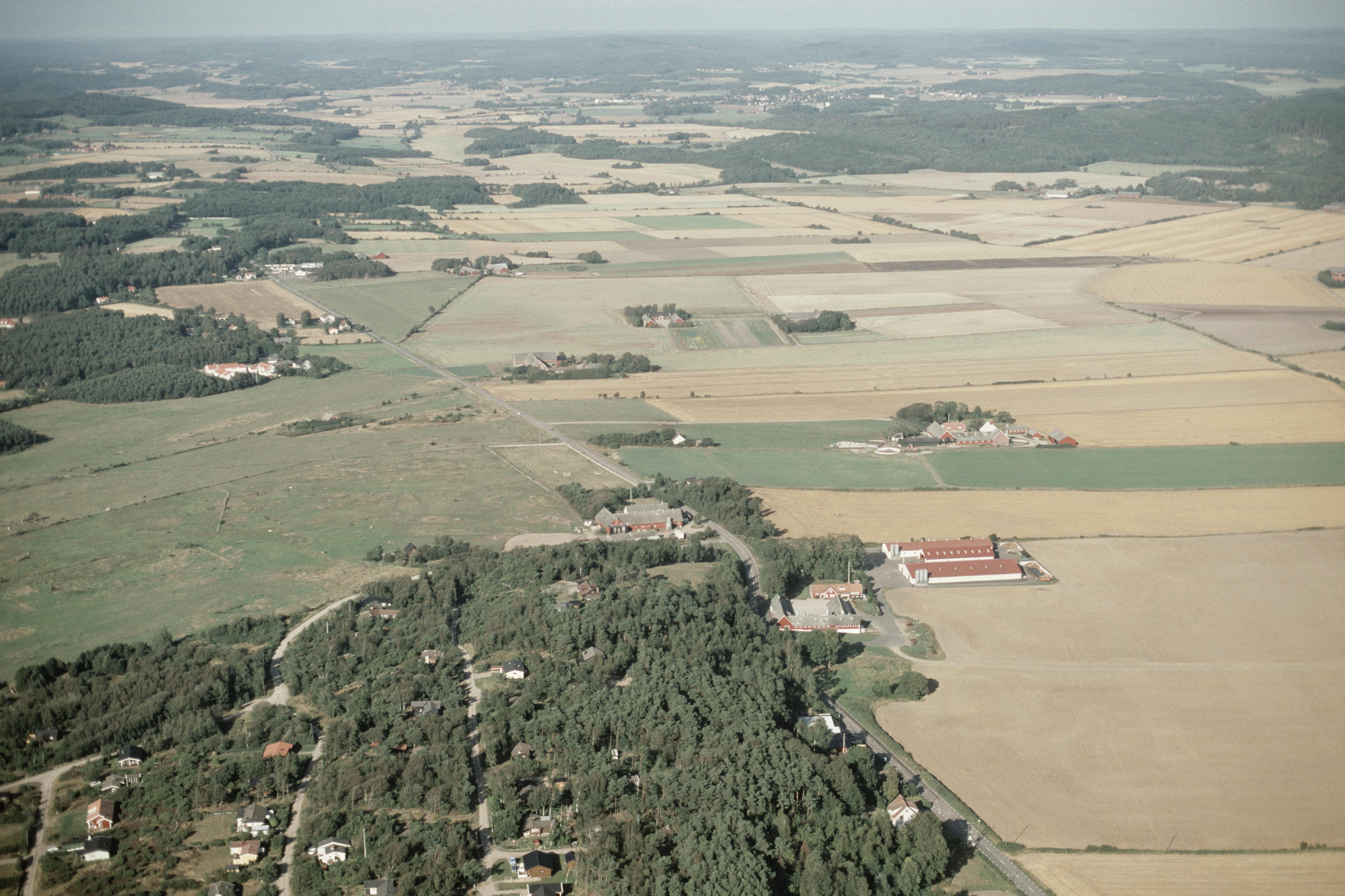 Beskrivning: Lassagård. Fyndplats Eftra 76:1 till höger vid bildens mitt. Söndregård och Berg i bildens övre del. Bilden är tagen mot (väderstreck): NO