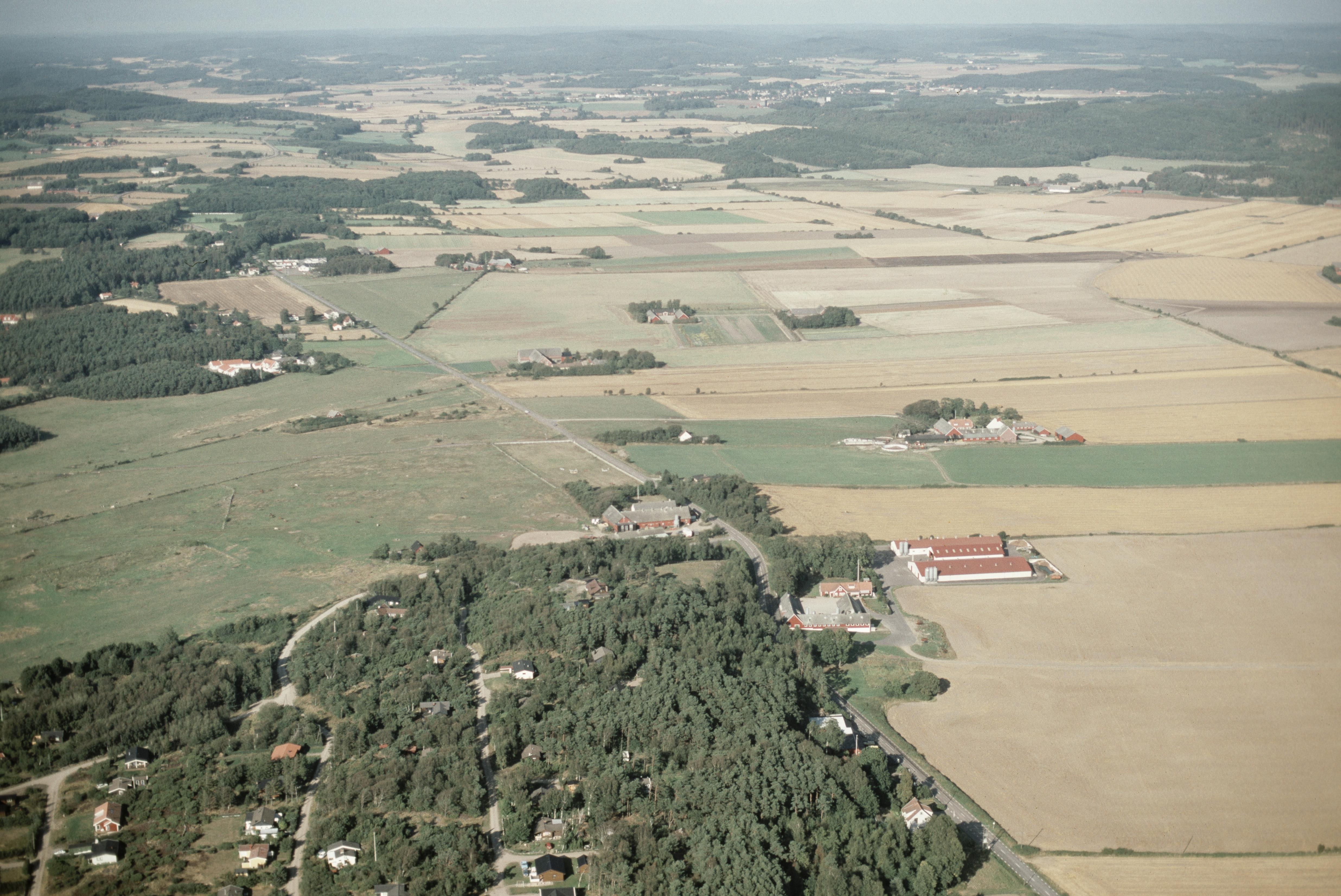 Beskrivning: Lassagård. Fyndplats Eftra 76:1 till höger vid bildens mitt. Söndregård och Berg i bildens övre del. Bilden är tagen mot (väderstreck): NO