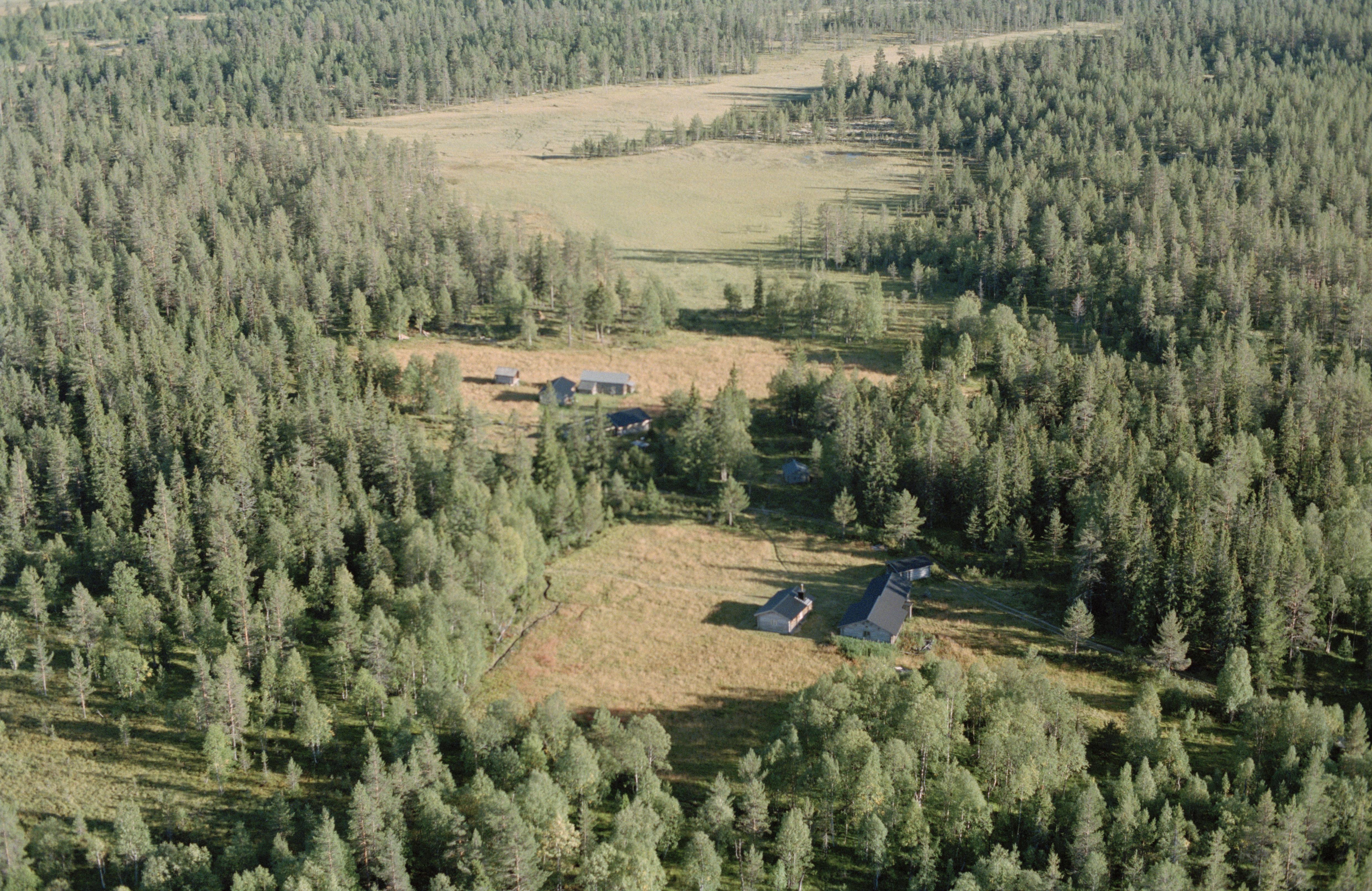 Beskrivning: Under bildens mitt fäbodområdet Lill-Härjåvallen, norr om fäbodområdet Lövnäsvallen i Stor-Härjåns dalgång. Erlandsmyran i bildens övre del. Bilden är tagen mot (väderstreck): SO