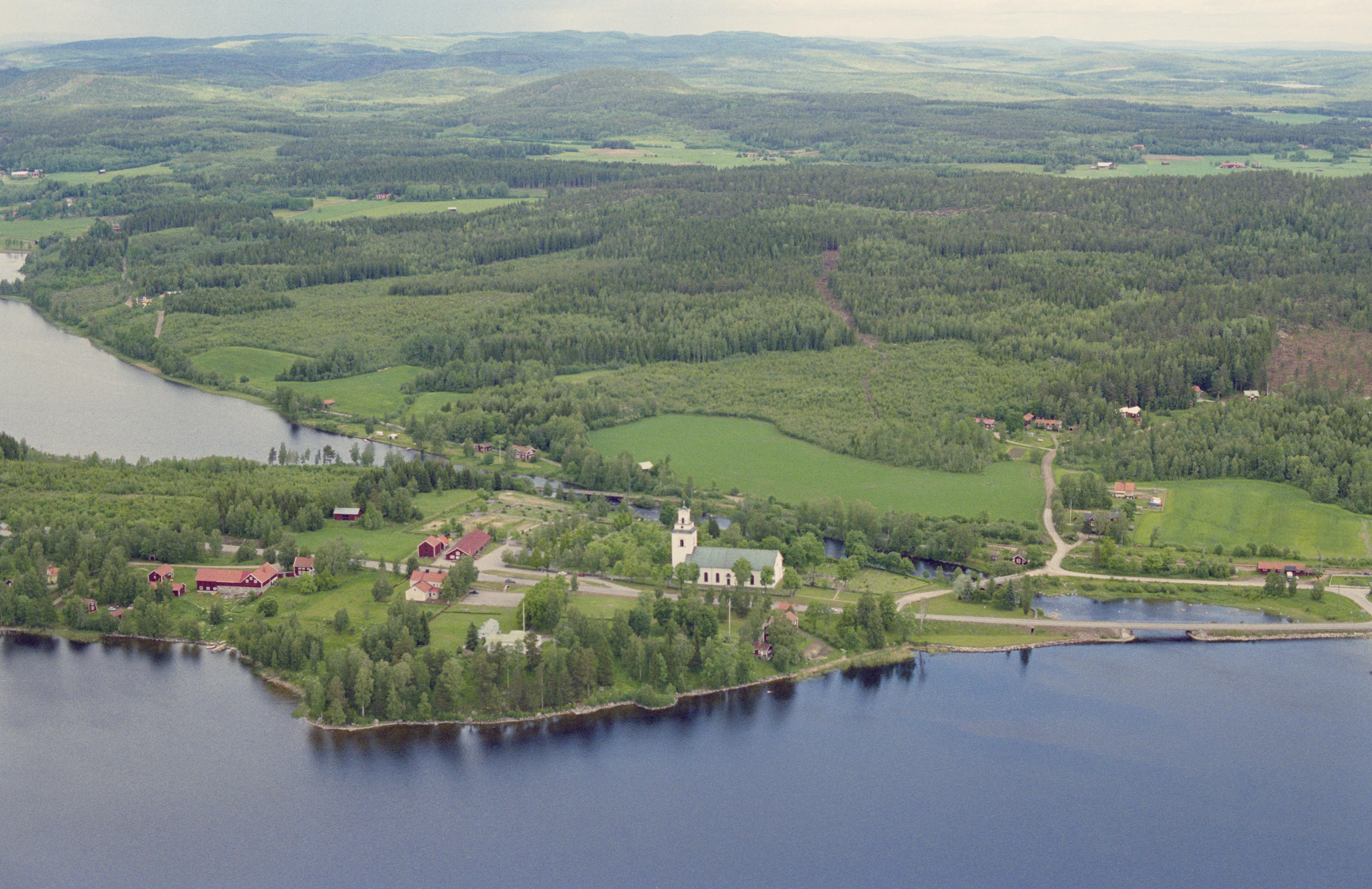 Beskrivning: Forsa kyrkby mellan Rolfstaån och Kyrksjön. Forsa kyrka under bildens mitt. Till höger om kyrkan bron RAÄnr Forsa 301:1. Bilden är tagen mot (väderstreck): N