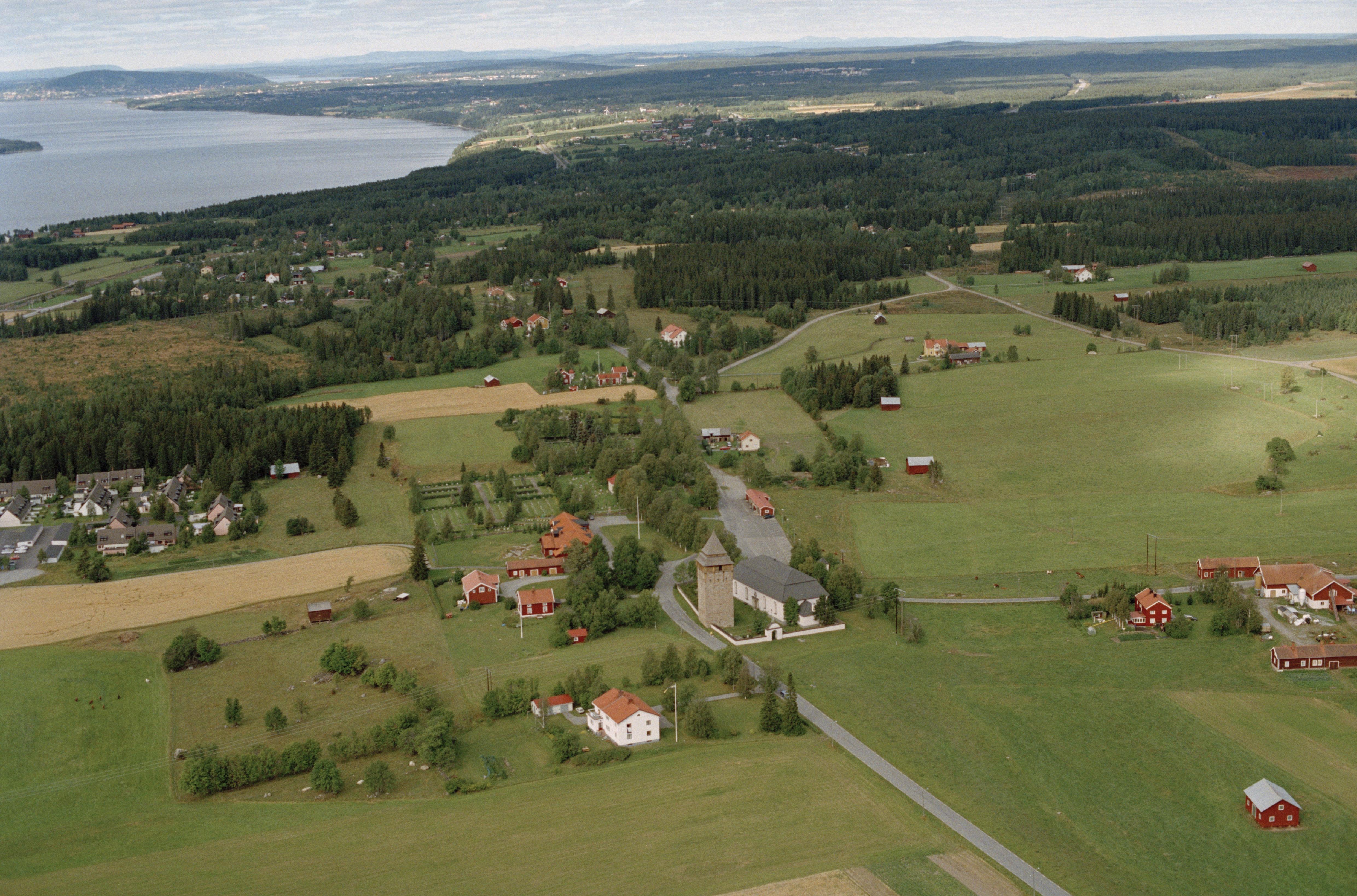 Beskrivning: Brunflo kyrkby vid Brunfloviken i Storsjön. Brunflo kyrka och kastal i bildens nedre del. Vid kyrkan bytomt RAÄnr Brunflo 220:1 m.fl. Bilden är tagen mot (väderstreck): NV