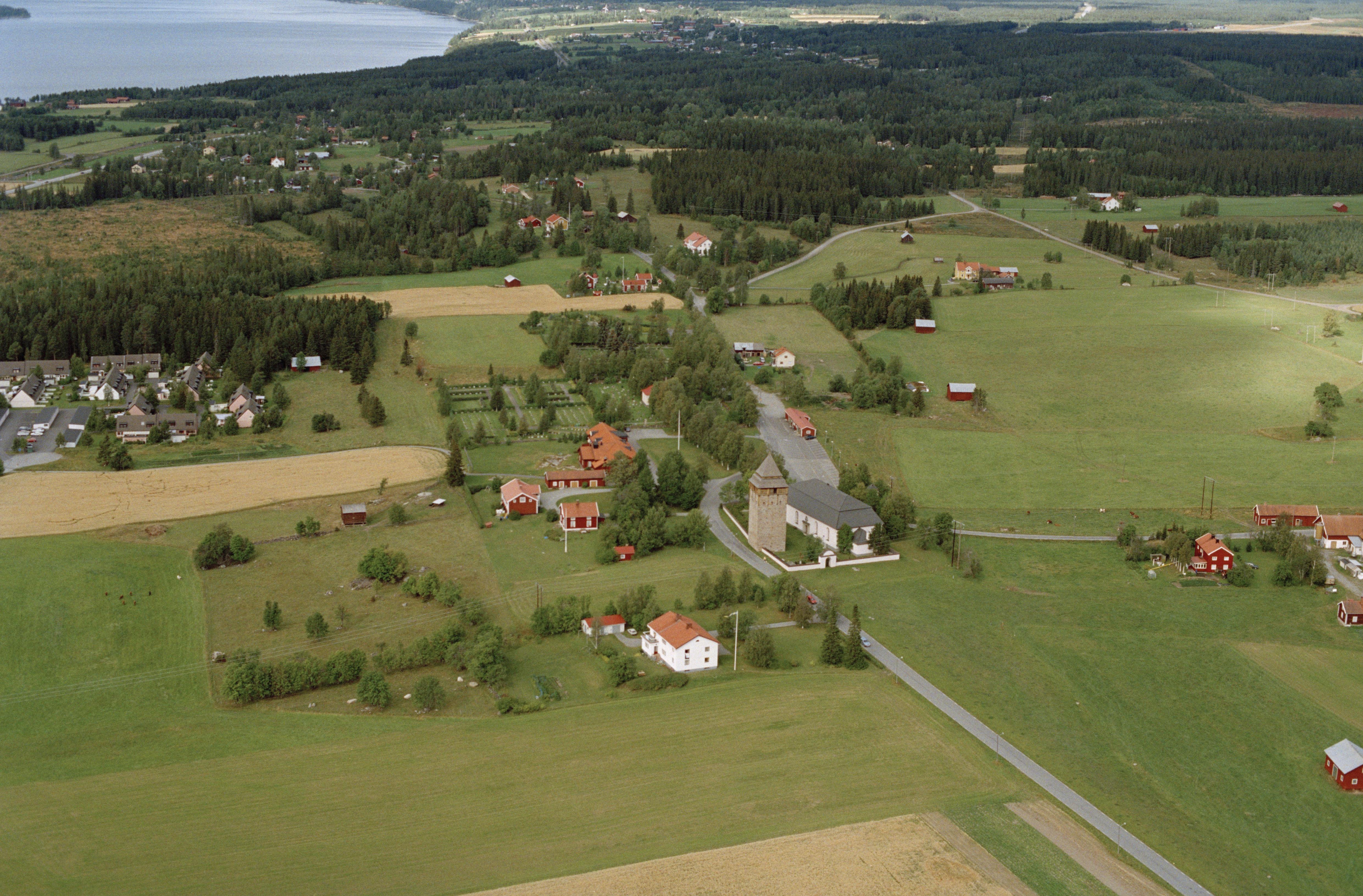 Beskrivning: Brunflo kyrkby vid Brunfloviken i Storsjön. Brunflo kyrka och kastal i bildens nedre del. Vid kyrkan bytomt RAÄnr Brunflo 220:1 m.fl. Bilden är tagen mot (väderstreck): NV