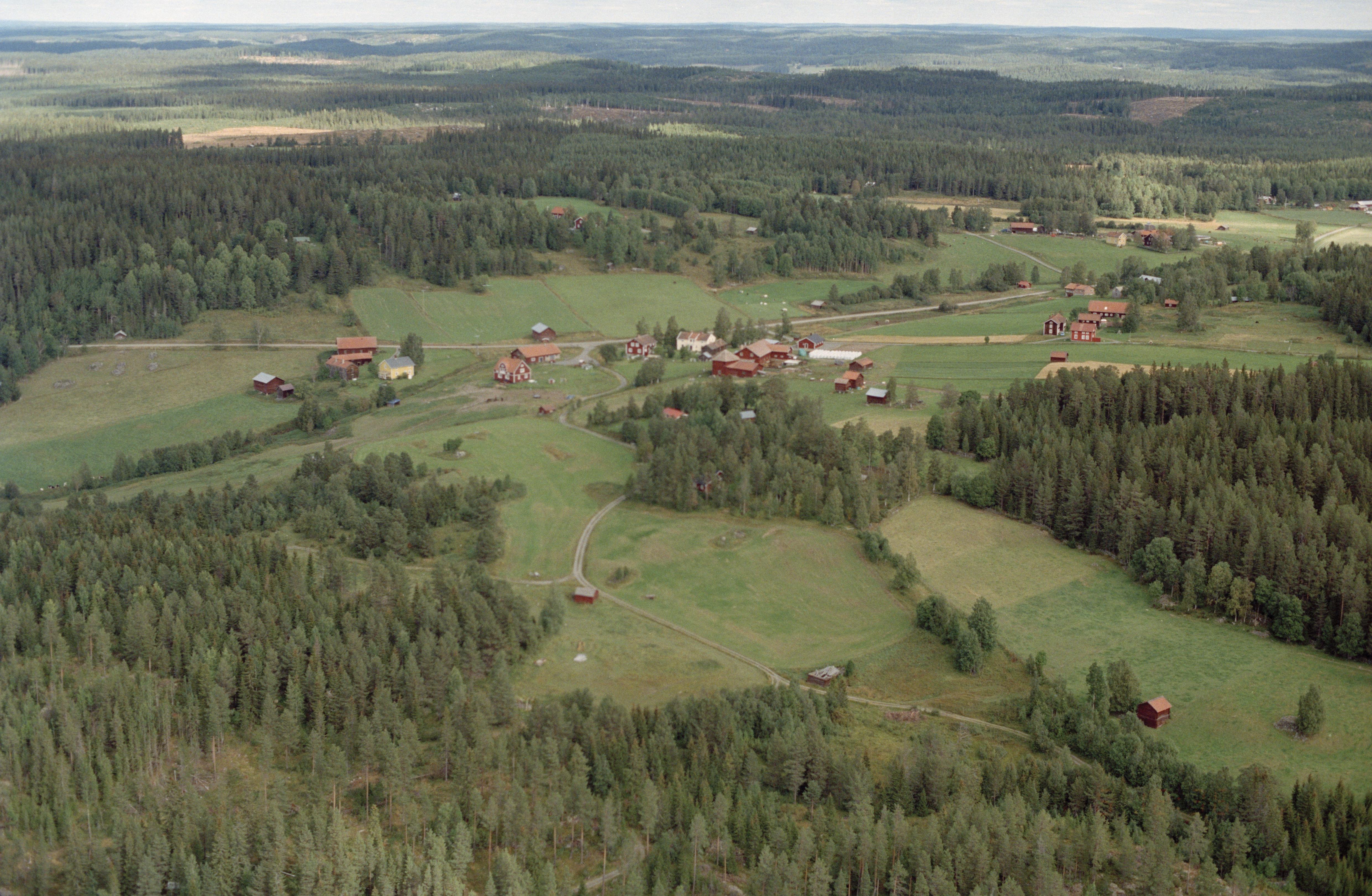 Beskrivning: Berge by vid Locknesjön. Till vänster över bildens mitt bytomt RAÄnr Lockne 205:1 och 206:1. Bilden är tagen mot (väderstreck): V