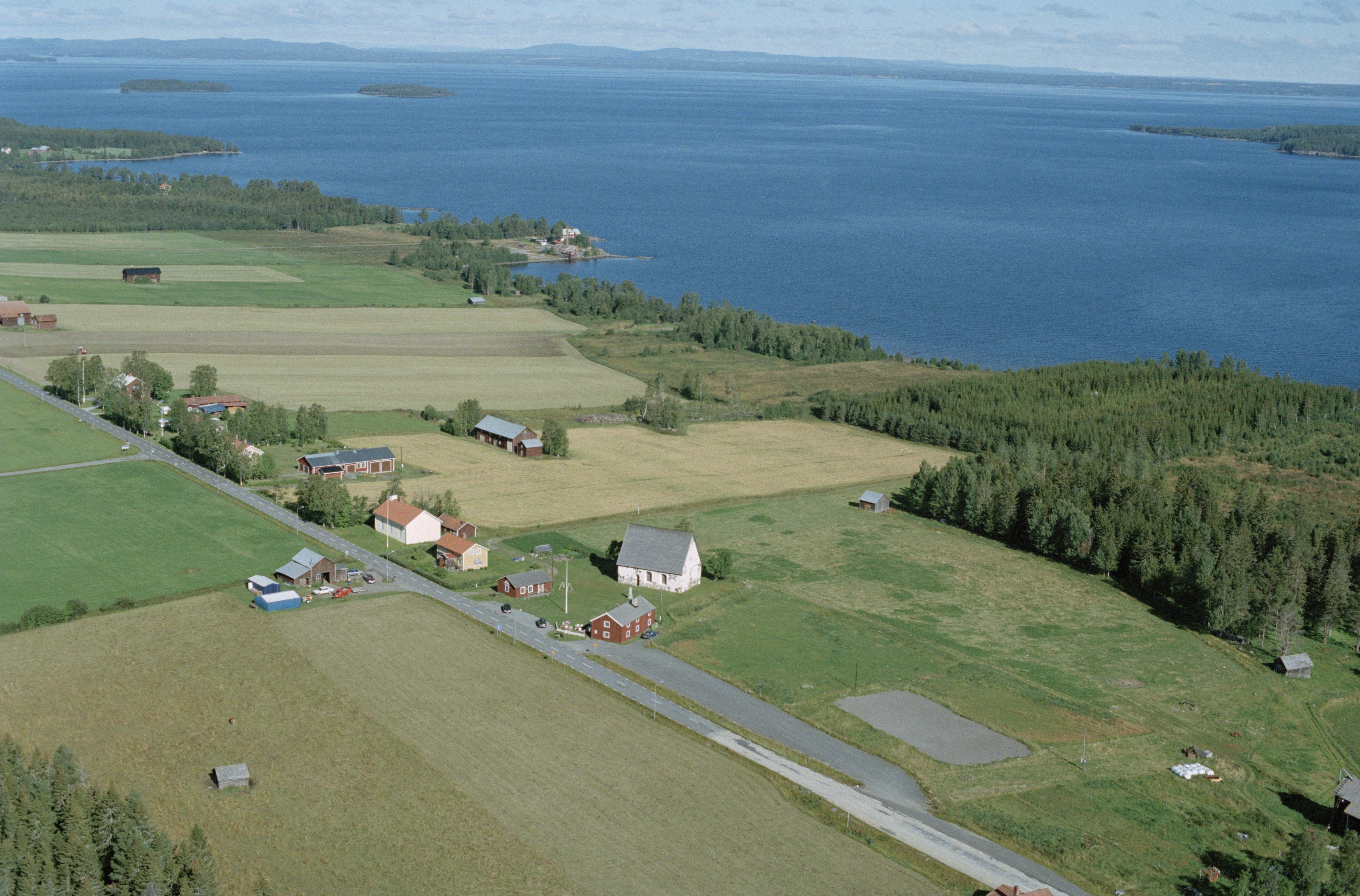 Beskrivning: Marby kyrkby vid Storsjön. Under bildens mitt Marby gamla kyrka RAÄnr Marby 25:1. Bilden är tagen mot (väderstreck): N