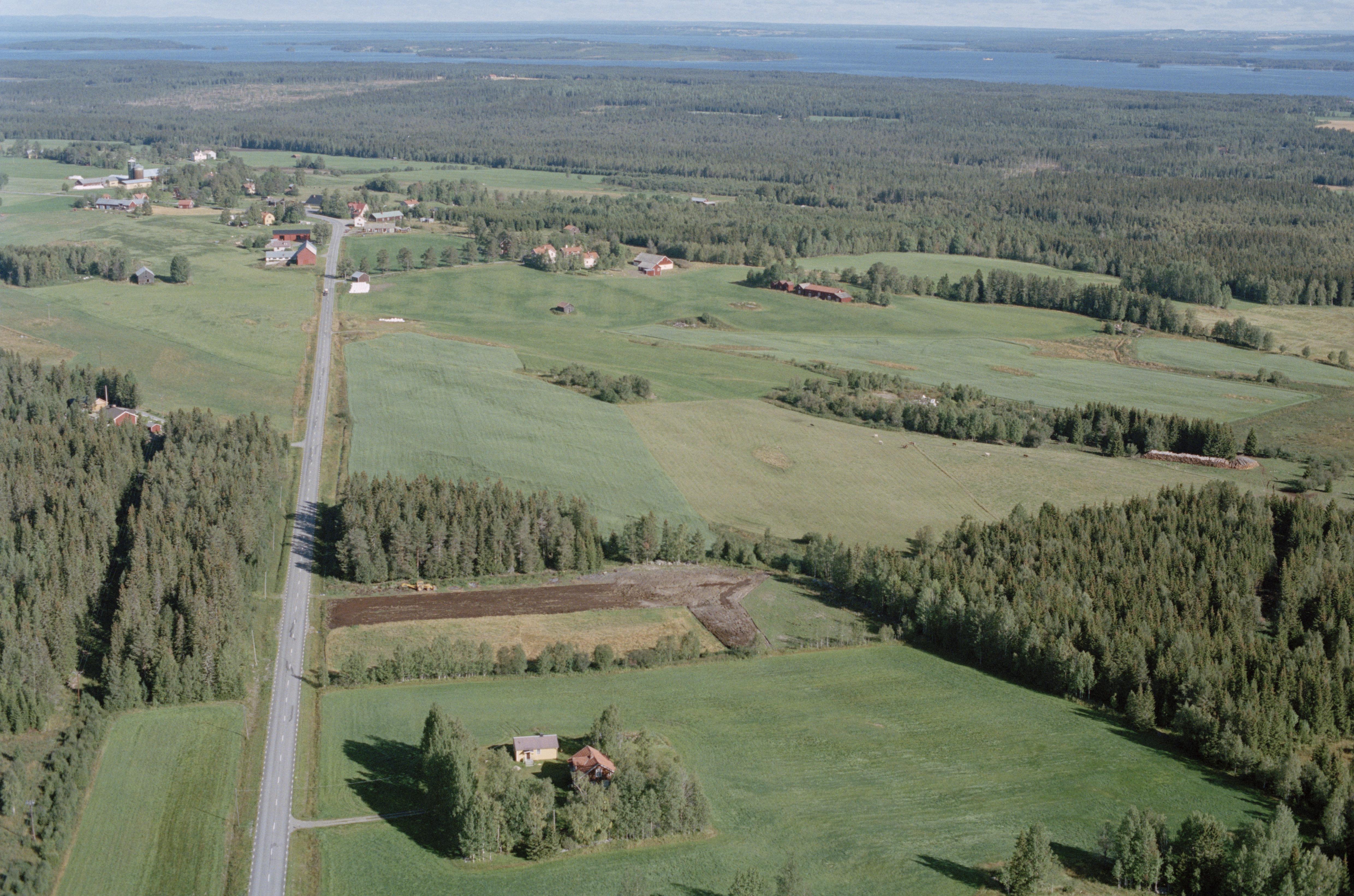 Beskrivning: Området Småängesåsen till vänster om bildens mitt. Mansgården i Marby by till vänster i bildens övre del. Vid gården bytomter RAÄnr Marby 192, 197 m.fl vid fossil åker Marby 82:1 m.m. Bilden är tagen mot (väderstreck): N
