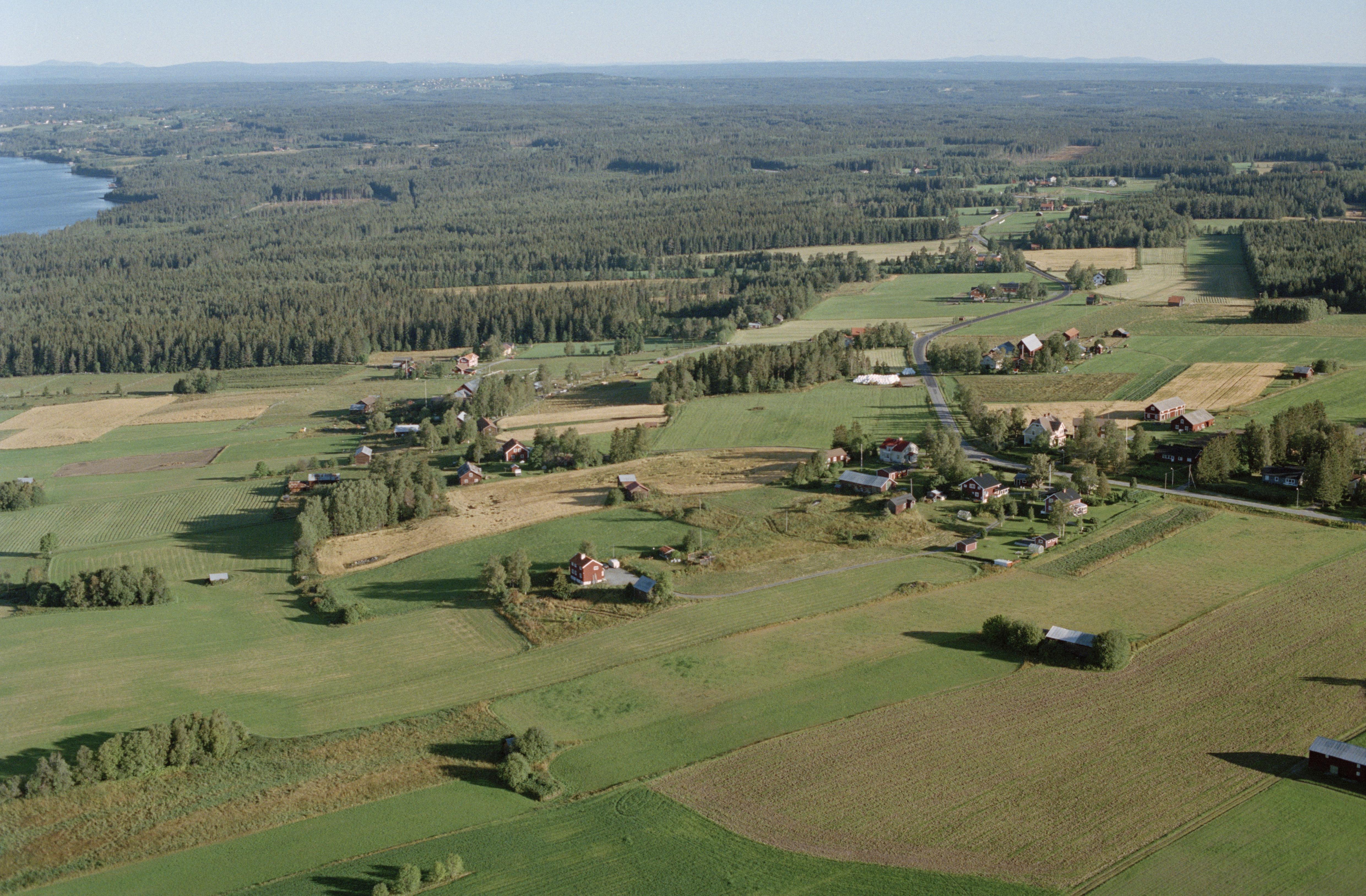 Beskrivning: Ösa by, väster om Ås kyrkby. Vid bildens mitt bytomt RAÄnr Ås 107:1-2, 108:1 m.fl. Åssjön uppe till vänster. Bilden är tagen mot (väderstreck): N