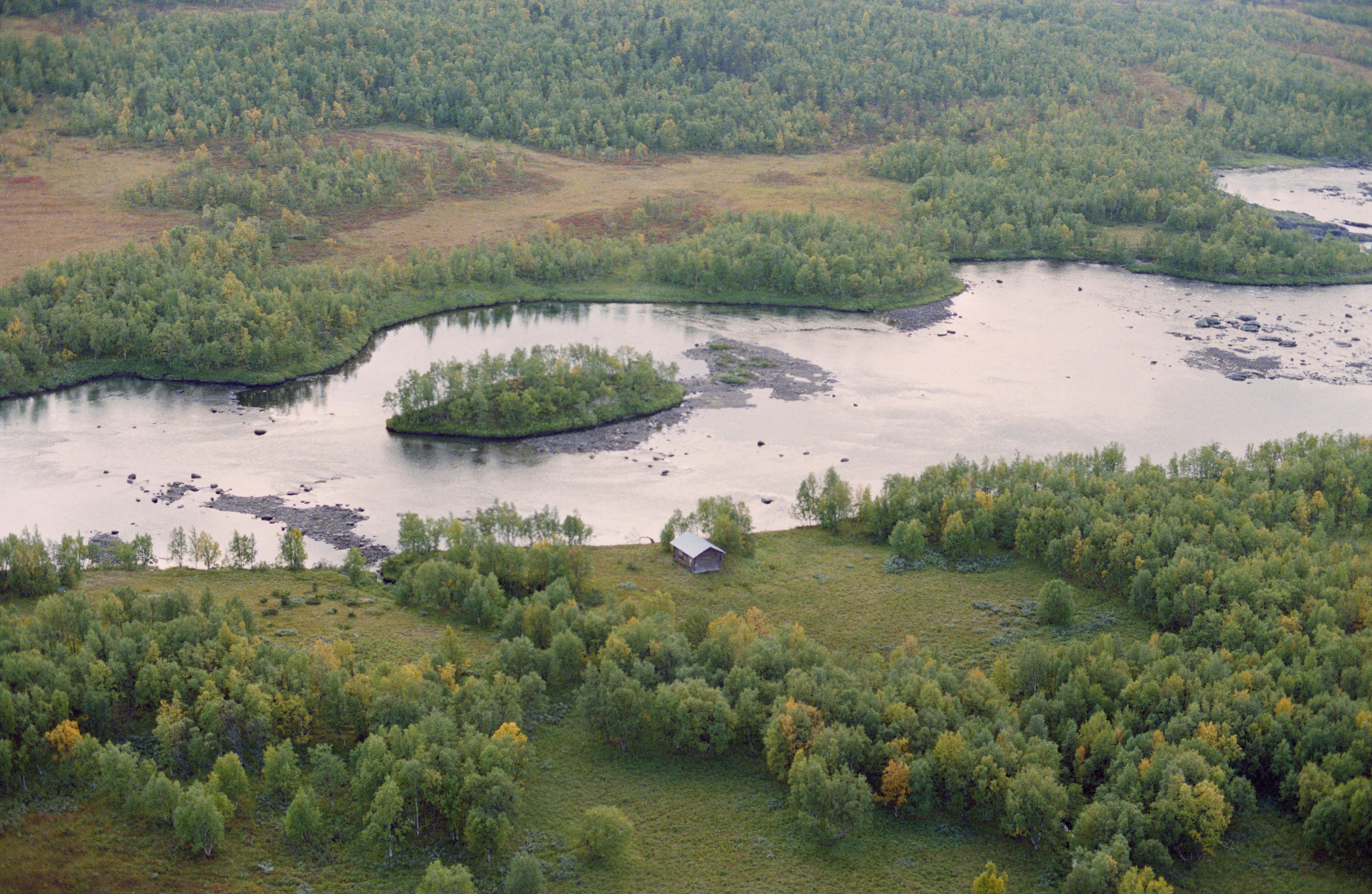 Beskrivning: Laisälven (Lájsso) vid Fjällfors småbruk / fjällägenhet i dalgången nordväst om byn Adolfsström. Ingår i Laisdalens fjällurskogs naturreservat. Bilden är tagen mot (väderstreck): SSV