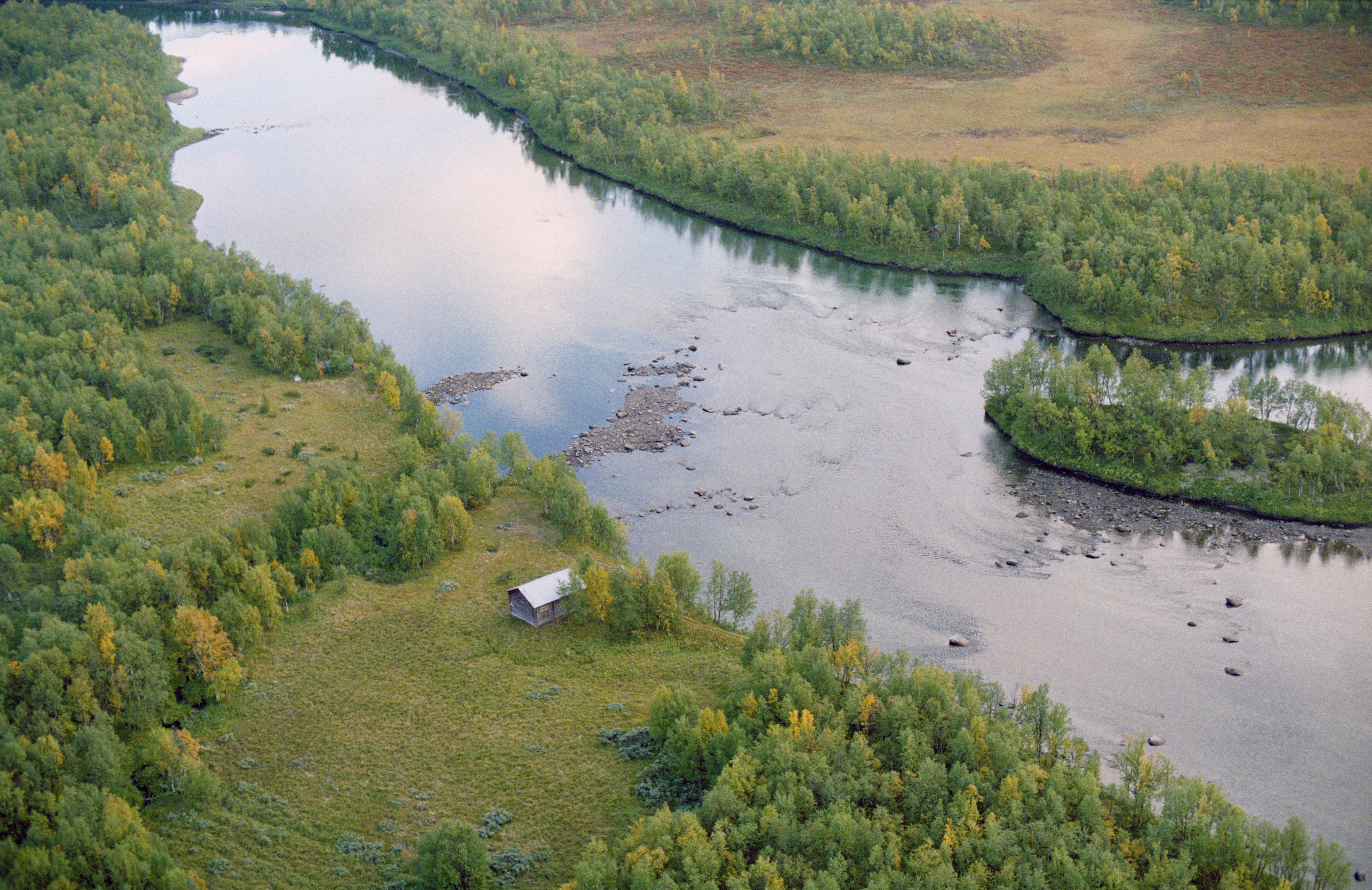 Beskrivning: Laisälven (Lájsso) vid Fjällfors småbruk / fjällägenhet i dalgången nordväst om byn Adolfsström. Ingår i Laisdalens fjällurskogs naturreservat. Bilden är tagen mot (väderstreck): SO