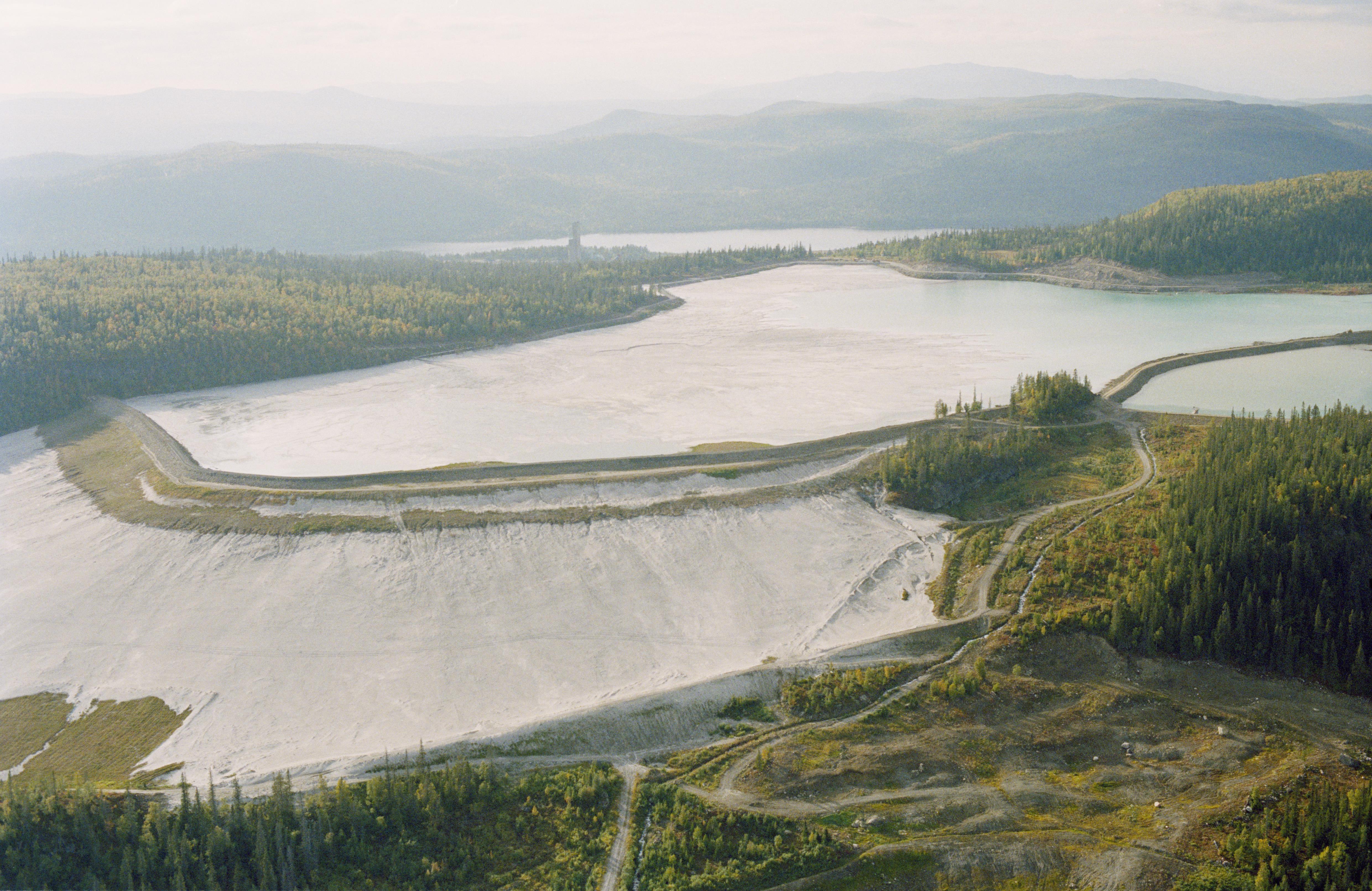 Beskrivning: Slamdammarna i blymalmsgruvan Laisvalls gruva (Laisvalls blygruva). gruvområdet är norr om tätorten Laisvall (Lájsogädde) vid Laisälven (Lájsso). Bilden är tagen mot (väderstreck): V