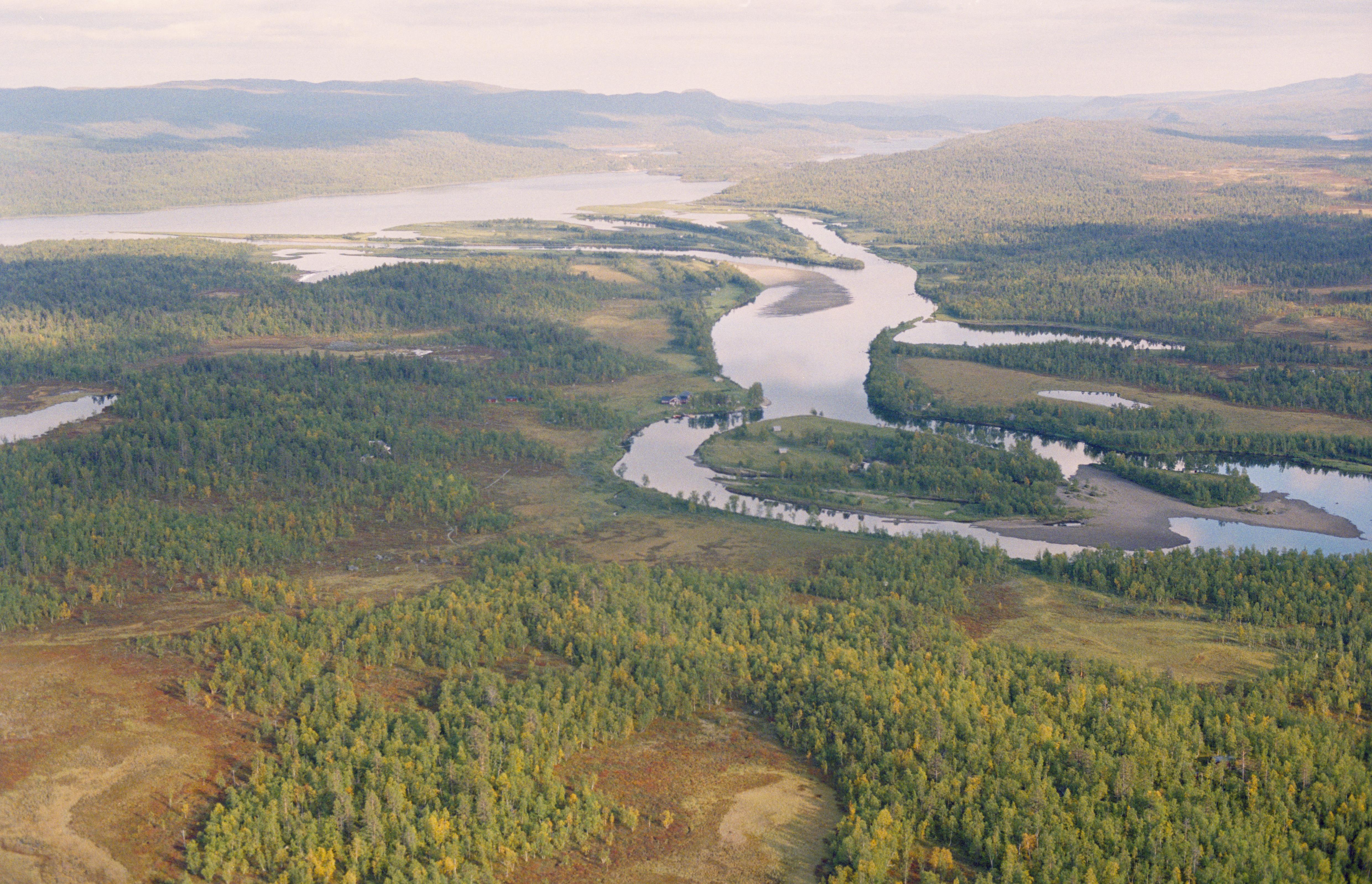 Beskrivning: I bildens mitt byn Bäverholmen (Vaddnemsuolo). I bildens övre del området Yrafdeltat (skrivs även Irafdeltat) där Laisälven (Lájsso) rinner in i sjön Iraft (Yraft). I deltat uppe till vänster en härd RAÄnr Arjeplog 564:1. Bilden är tagen mot (väderstreck): OSO