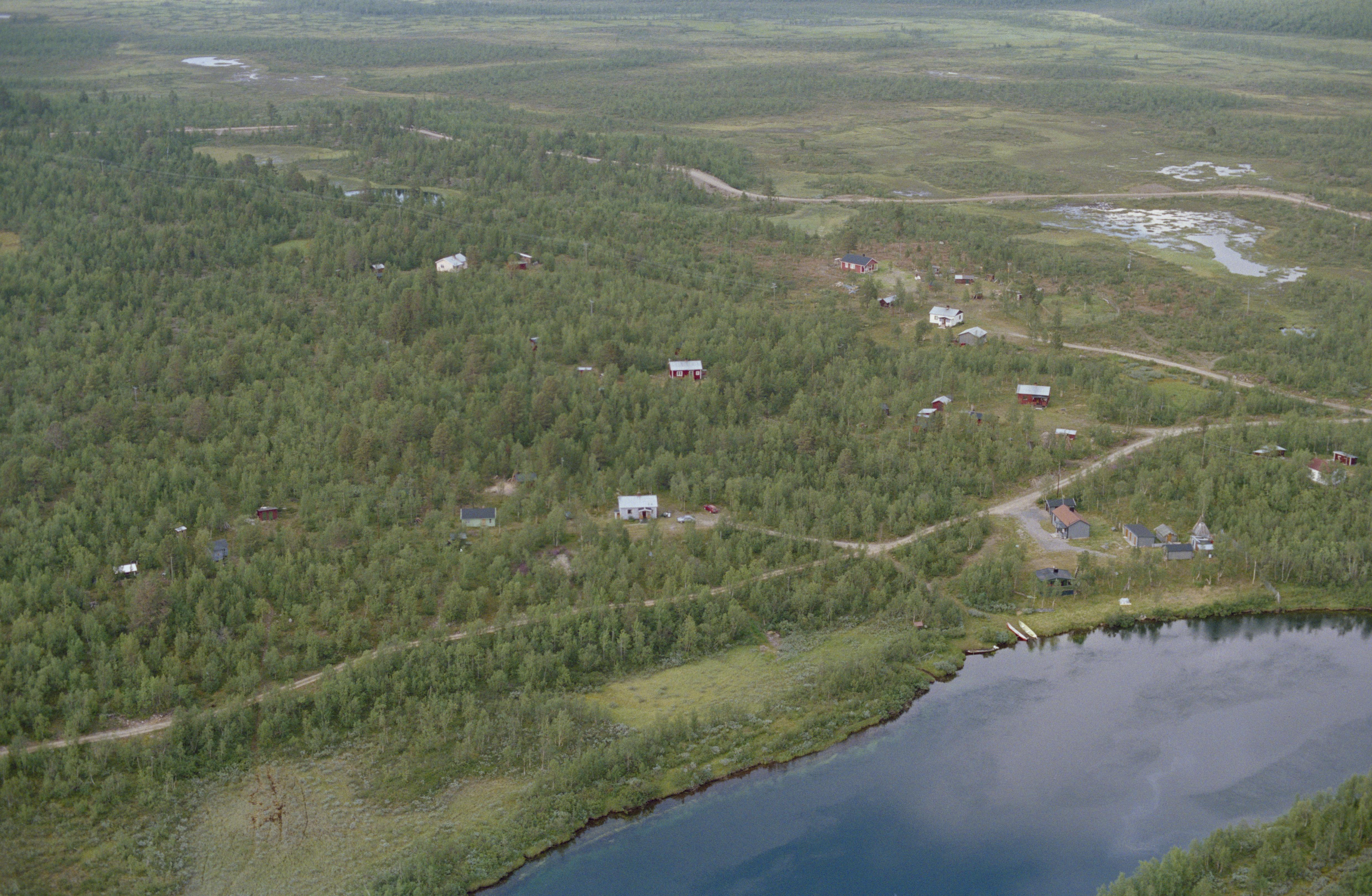 Beskrivning: Kaitum (Njavvi) by och sameviste vid Kaitumälven (Gáidumeatnu). Till höger över bildens mitt en härd RAÄnr Gällivare 627:1. Bilden är tagen mot (väderstreck): NNO