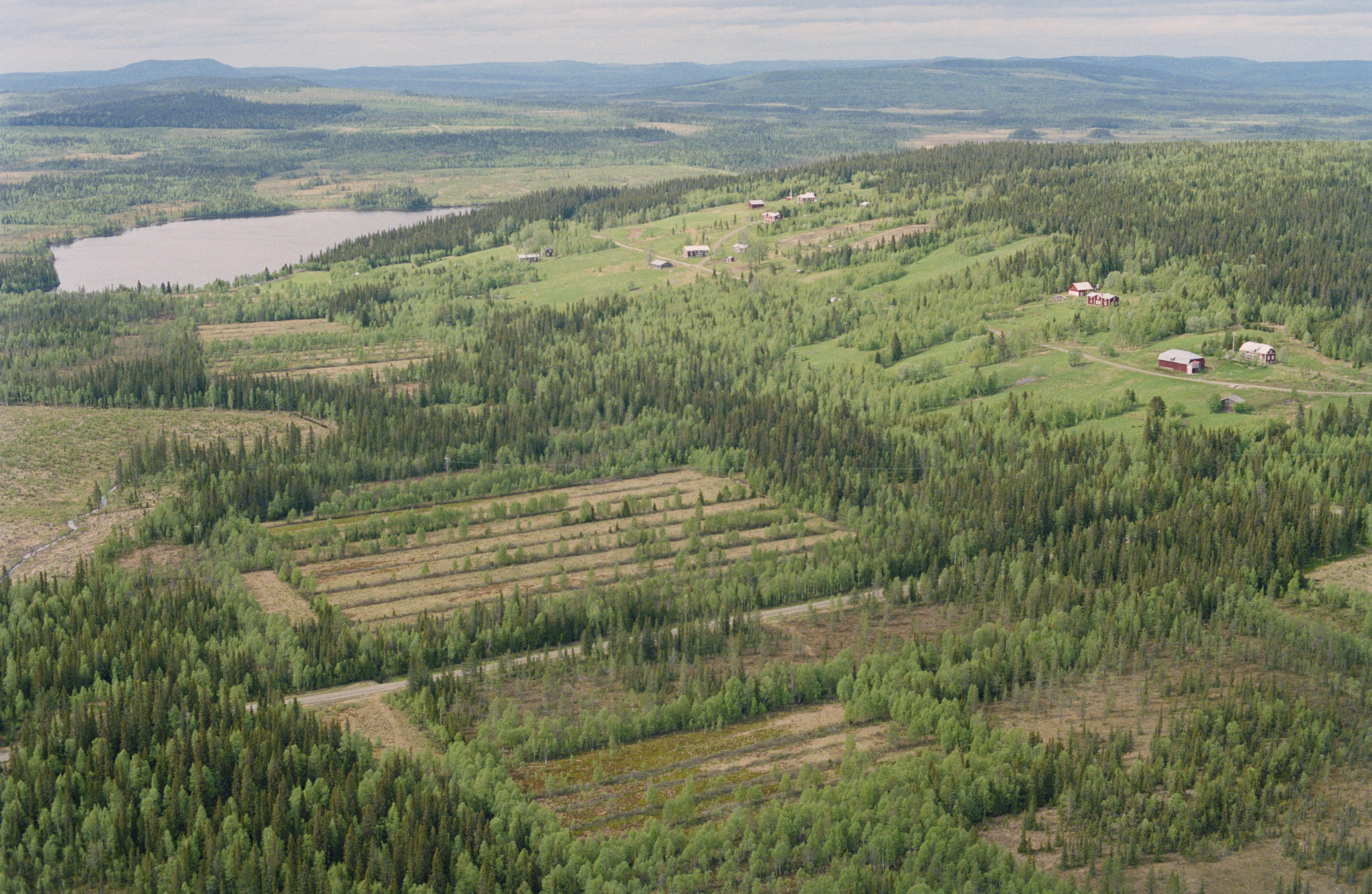 Beskrivning: Bjurträsks by med våtslåttermarker. Uppe till vänster sjön Bjurträsket. Uppe i skogen i bildens vänstra hörn ett område med härdlämning RAÄnr Lycksele 257:1. Bilden är tagen mot (väderstreck): NV