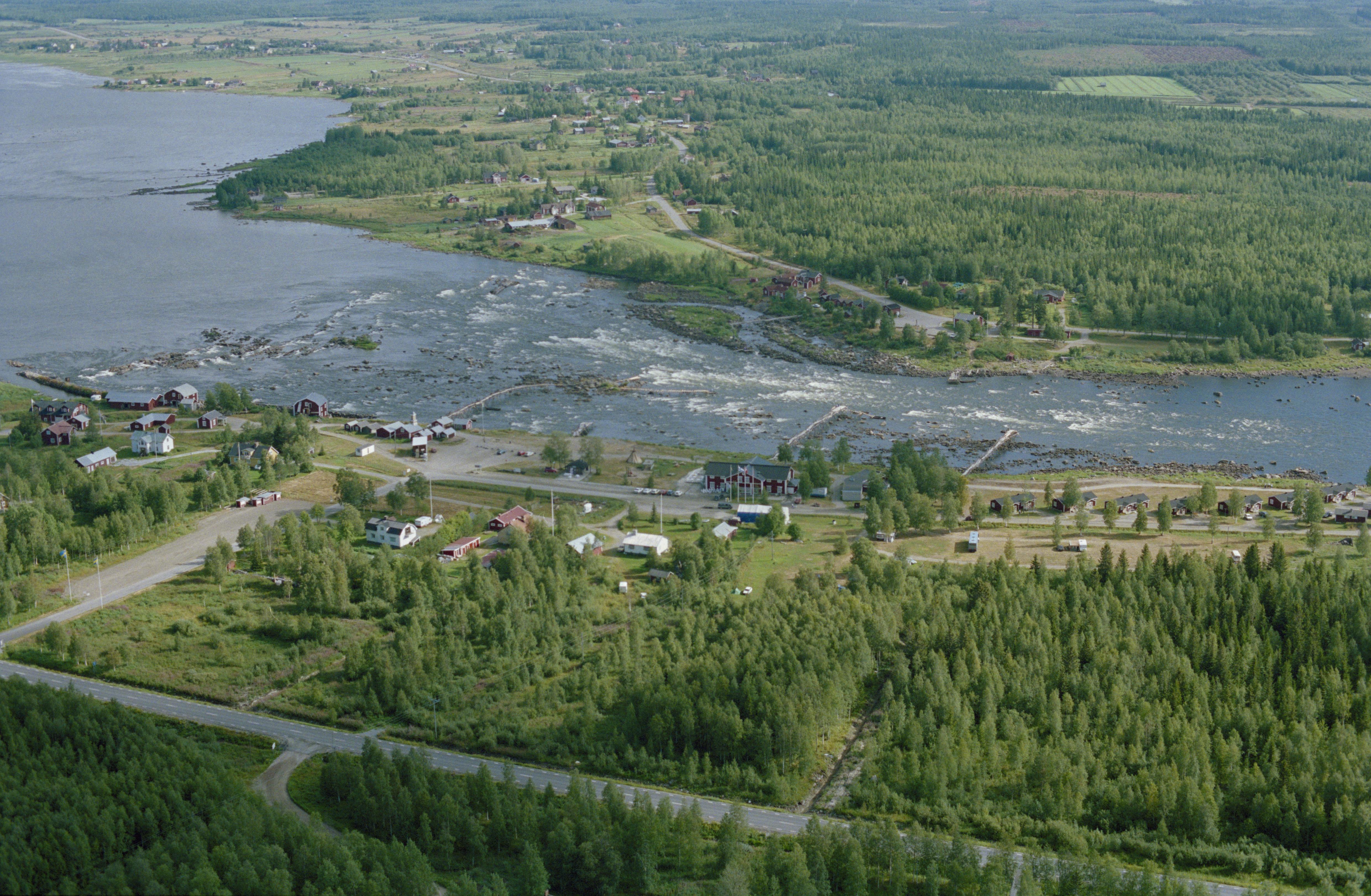 Beskrivning: Anmärkning (övrig): Riksintresse-nr/namn: BD15a - Tornedalen. Socken: delen i <f.d. Haparanda>, Nedertorneå och Karl Gustav. Motivering: Älvdalsbygd med förhistorisk bruknings- och bosättningskontinuitet, präglad av ett öppet odlingslandskap med bymiljöer, vissa av medeltida ursprung, och fiskeplatser längs älven. En mångskiftande kulturmiljö med välbevarad jordbruksbebyggelse och byastruktur. Bebyggelse som är knuten till fisket visar i en bygd som etablerades tidigt på den viktiga kopplingen mellan fiske och jordbruk och som fortfarande har ett aktivt jordbruk och fiske. Tornedalen ger goda exempel på odlingsmarkens organisation och struktur i de östligaste delarna av Sverige. På många ställen syns en klar ö(…) Texten i detta fält har förkortats vid migrering till e-arkivet. Se filbilagan extra.xml för fullständig information under note_archivist. Beskrivning: Kukkola (Koskenpää) by i Tornedalen. Riksgränsen mot Finland över bildens mitt. Längs bildens mitt Kukkolaforsen i Torneälven. Till vänster under bildens mitt kalkugn RAÄnr Karl Gustav 182:1. Bilden är tagen mot (väderstreck): NO Fotosyfte: Flygbildsdokumentation