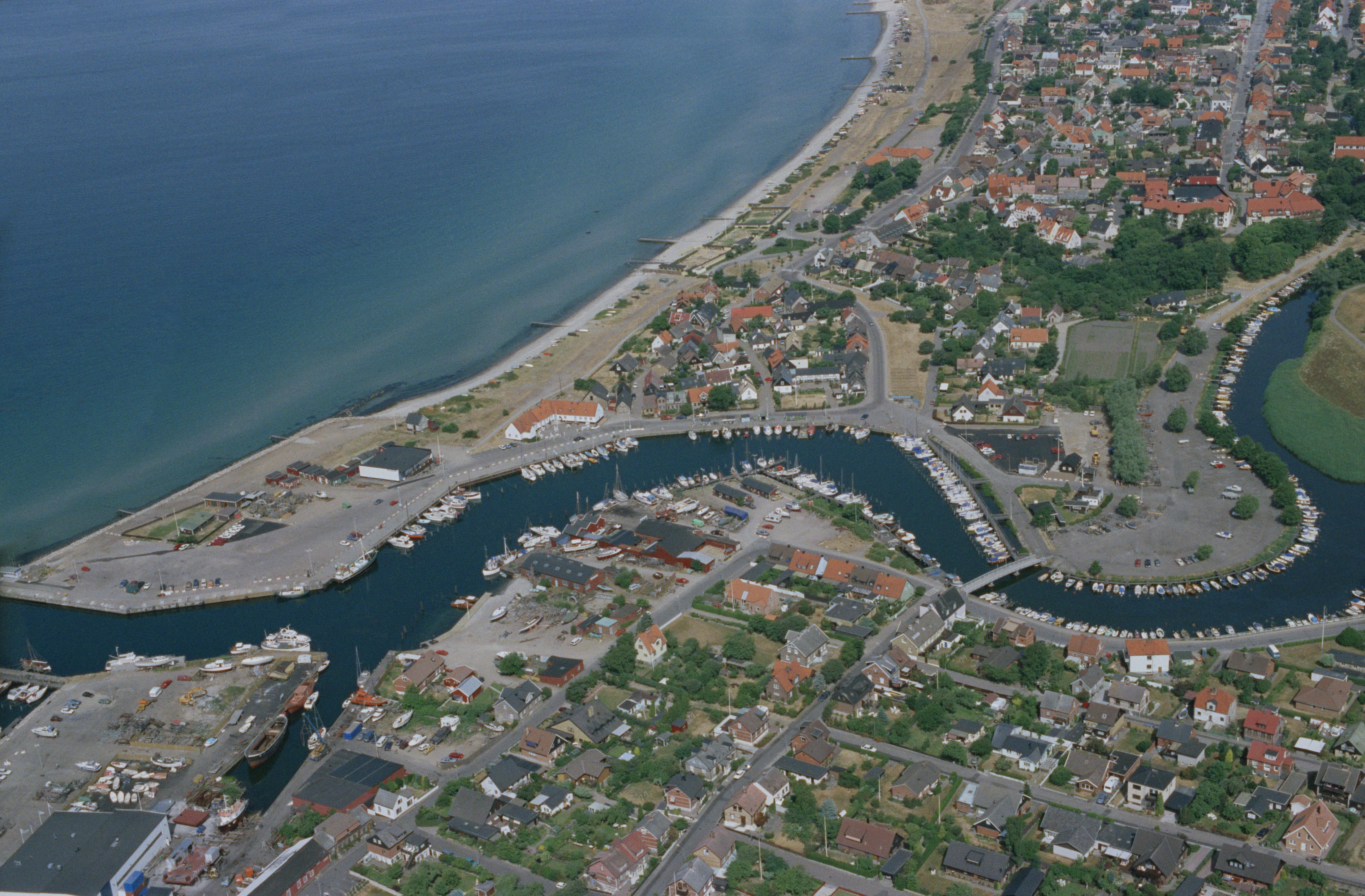 Beskrivning: (Tidigare Raus socken). Råå hamn med Råå-åns utflöde i Öresund. Bilden är tagen mot (väderstreck): NV