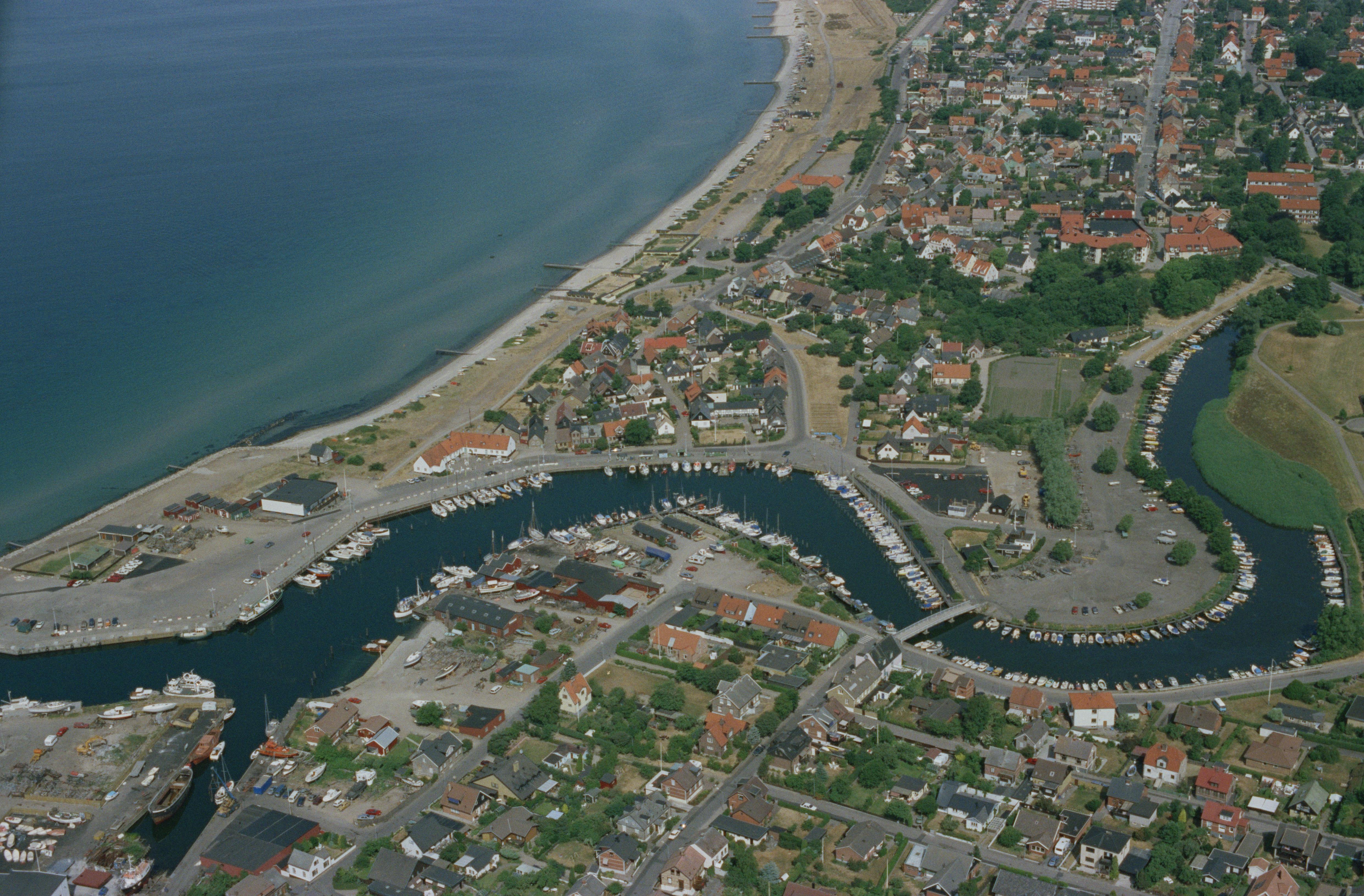 Beskrivning: (Tidigare Raus socken). Råå hamn med Råå-åns utflöde i Öresund. Bilden är tagen mot (väderstreck): NV