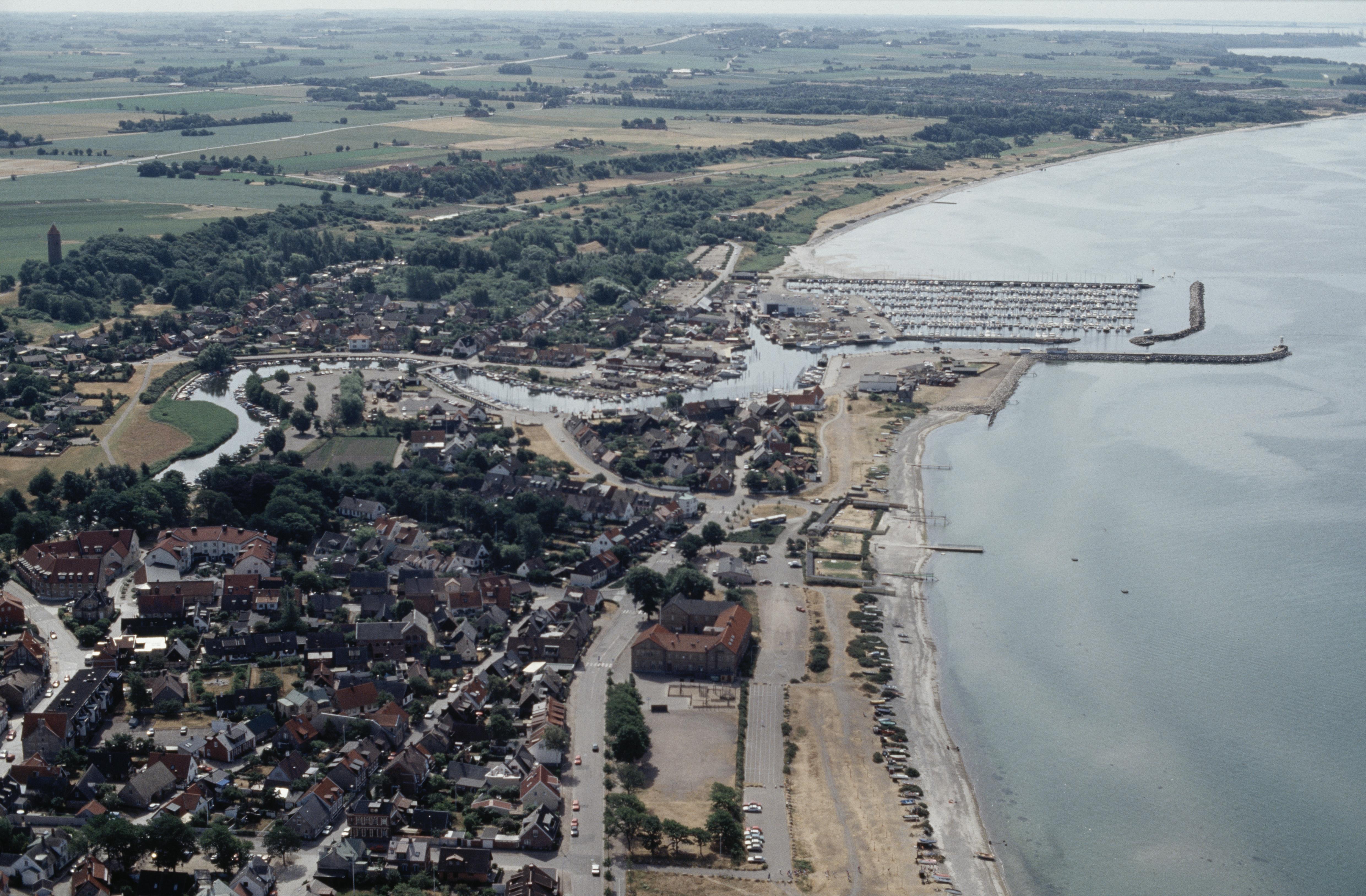 Beskrivning: (Tidigare Raus socken). Råå hamn, Campingplats, badplats. Råå vallar RAÄnr Helsingborg 92:1vid stranden. I bildens mitt Råå-åns utflöde i Öresund. Bilden är tagen mot (väderstreck): SO