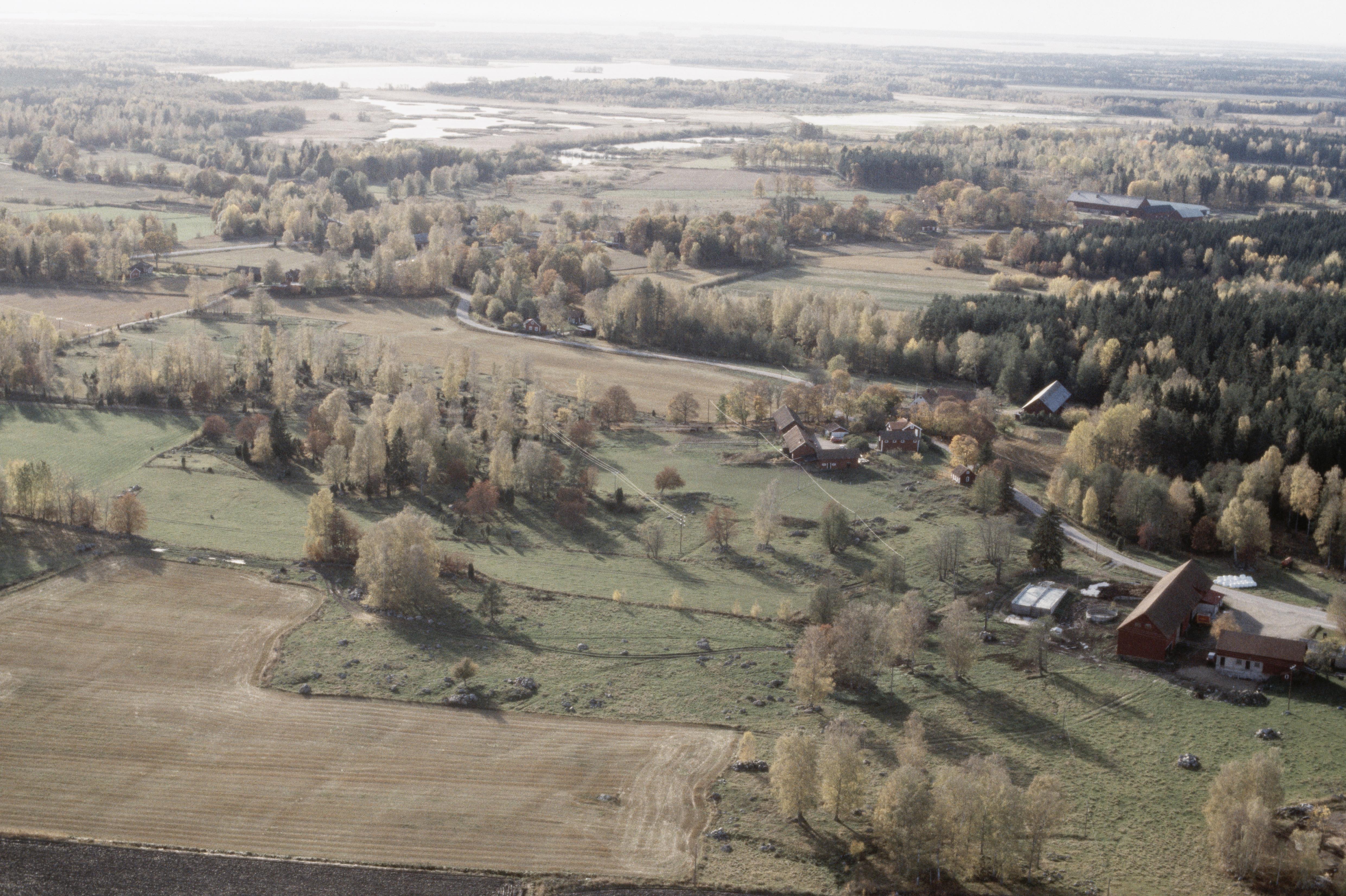 Beskrivning: Nere till höger Tyringe by. I bildens övre del fornåker RAÄnr Arboga socken 110 m.fl. vid Findla by och sjön Frösshammarsviken. Bilden är tagen mot (väderstreck): VSV