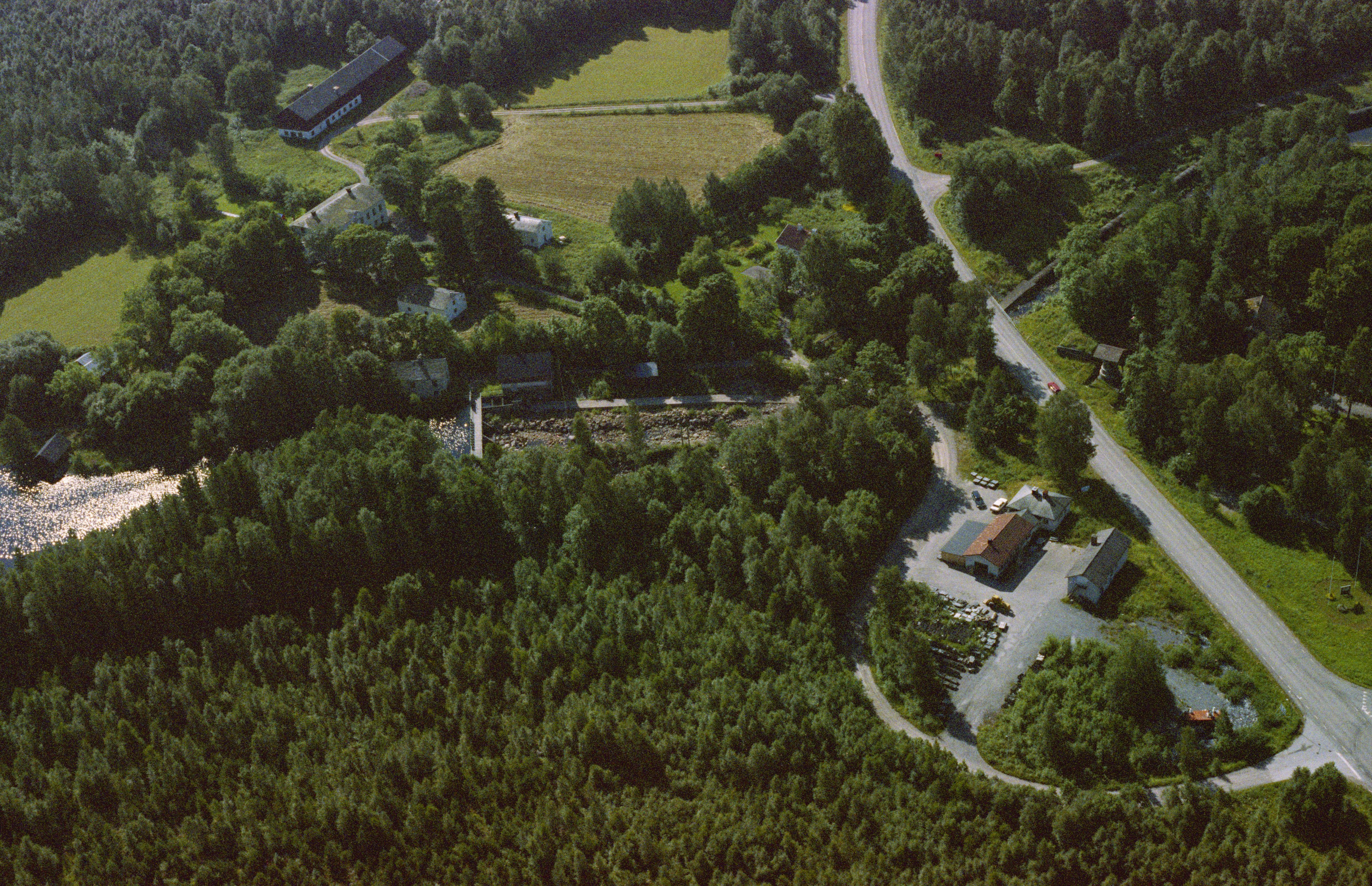 Beskrivning: Tätorten Grythyttan mellan sjöarna Torvarpen och Sör-Älgen. Vid bildens mitt Grythyttans gamla tomt och brukslämning RAÄnr Grythyttan 45:1-2 vid bron Grythyttan 110:1. Bilden är tagen mot (väderstreck): SSO