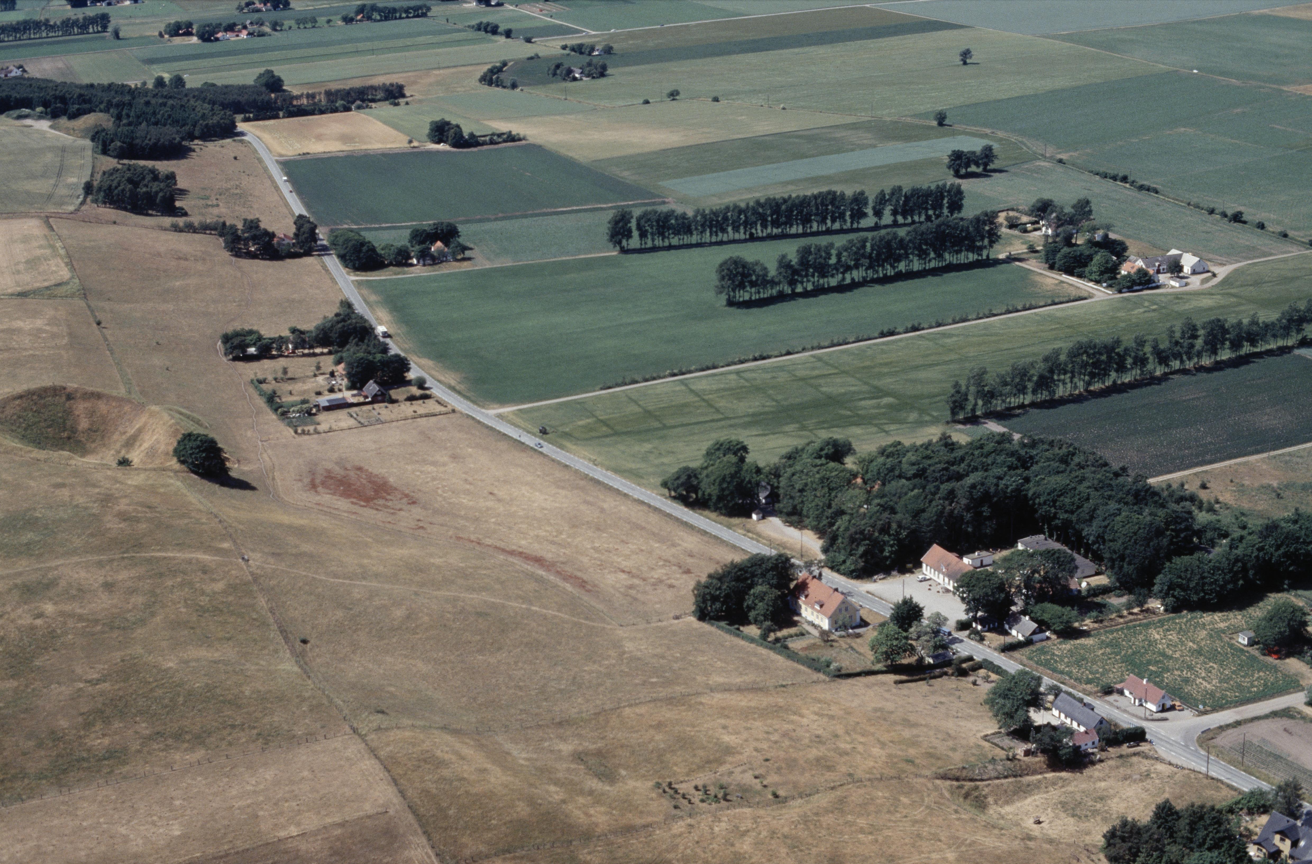 Beskrivning: Vid bildens mitt fastigheten Hagestad 44:78 vid Östra Kustvägen, Sandhammaren. Gravfält RAÄnr Löderup 4:1 till höger. Bilden är tagen mot (väderstreck): NV