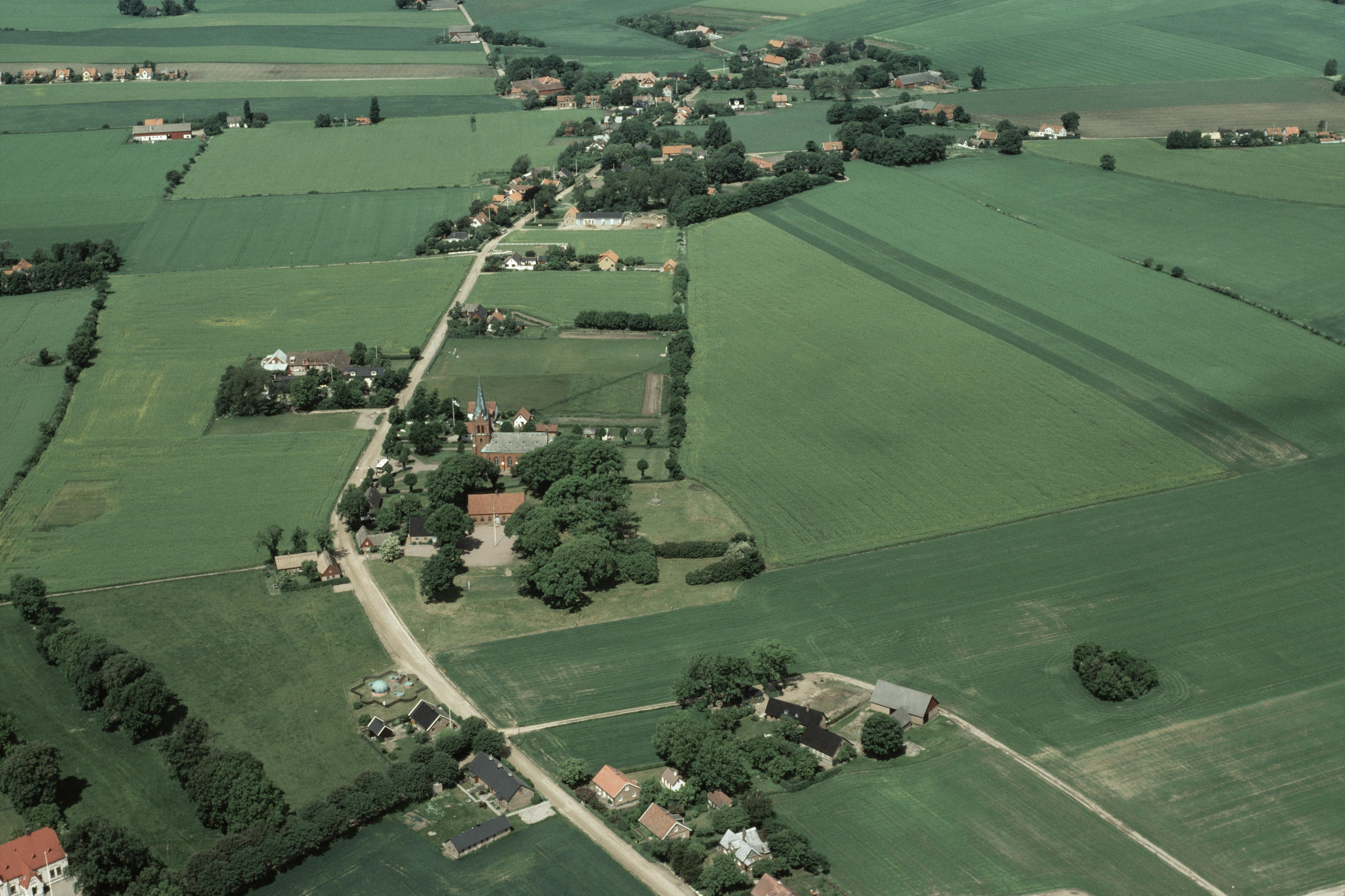 Beskrivning: Sankt Ibbs nya kyrka. Ruiner efter Tycho Brahes slott Uranienborg och observatorium Stjärneborg RAÄnr Sankt Ibb 29:1. Bilden är tagen mot (väderstreck): N
