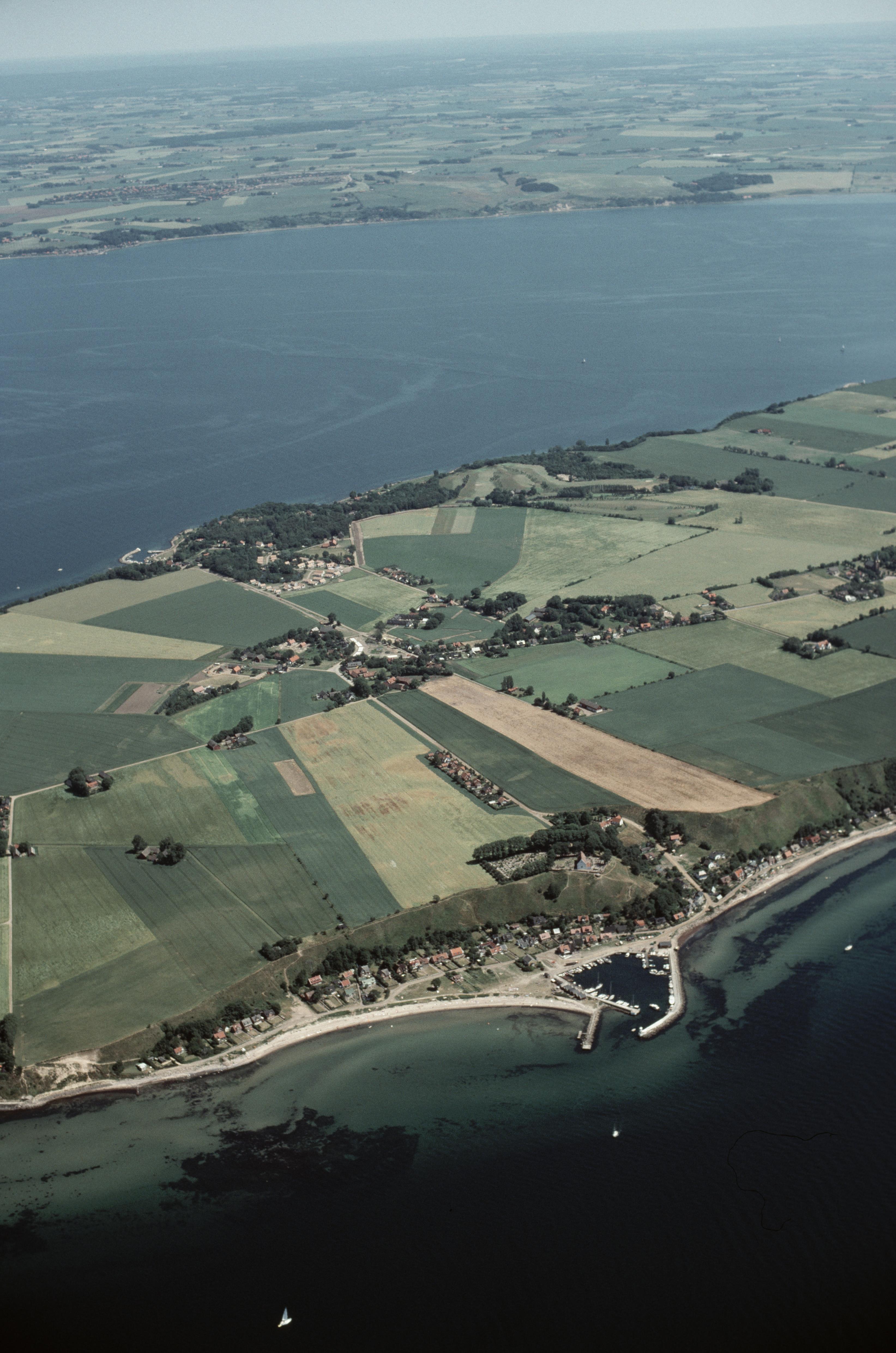 Beskrivning: I bildens nedre del fiskeläget Kyrkbacken med Sankt Ibbs gamla kyrka. Vid bildens mitt Tuna by. Bilden är tagen mot (väderstreck): Ö