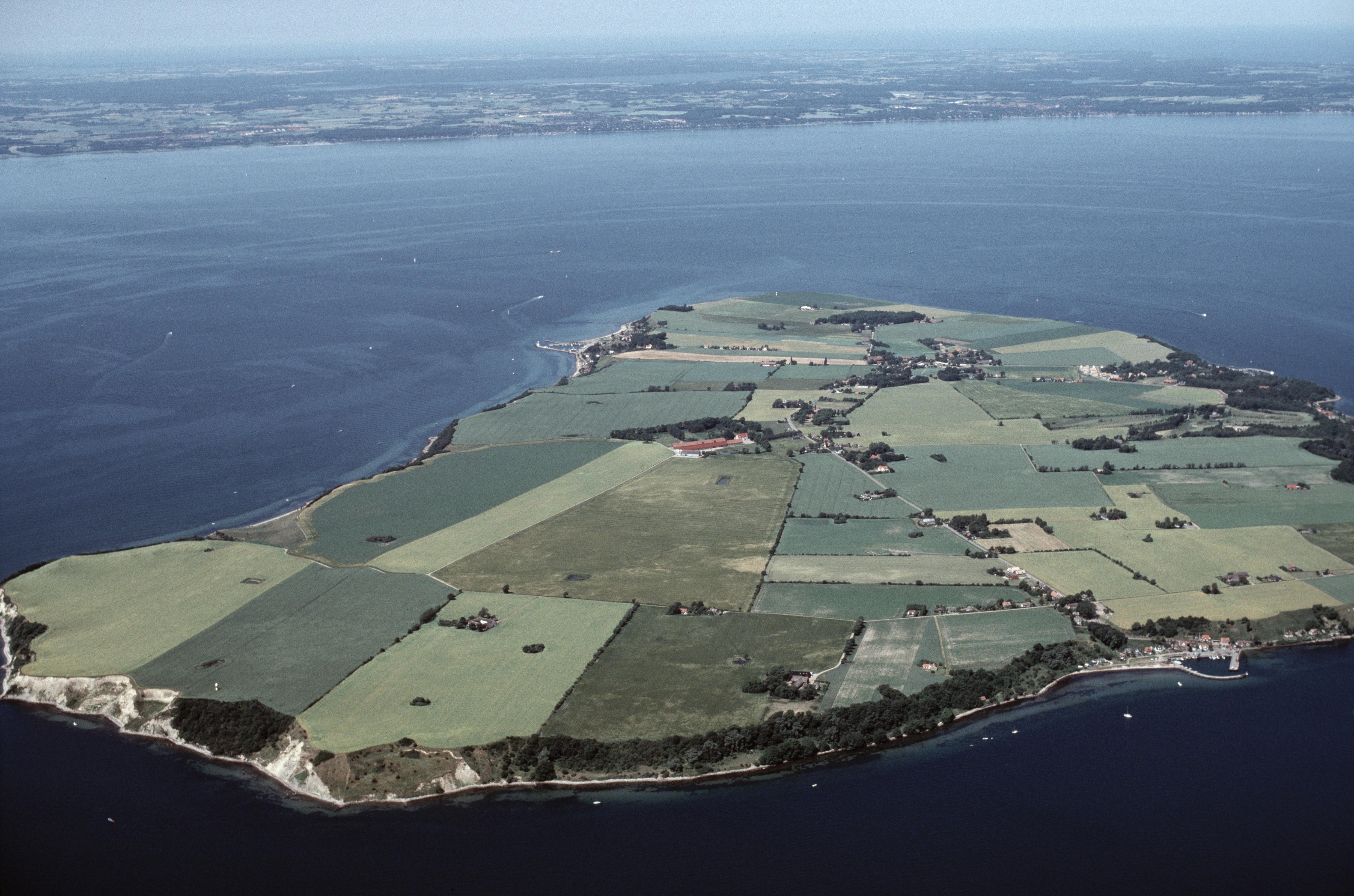 Beskrivning: Vid bildens bildens mitt Tuna by och Tycho Brahes slott Uranienborg RAÄnr Sankt Ibb 29:1. Till höger fiskeläget Bäckviken. Bilden är tagen mot (väderstreck): NV