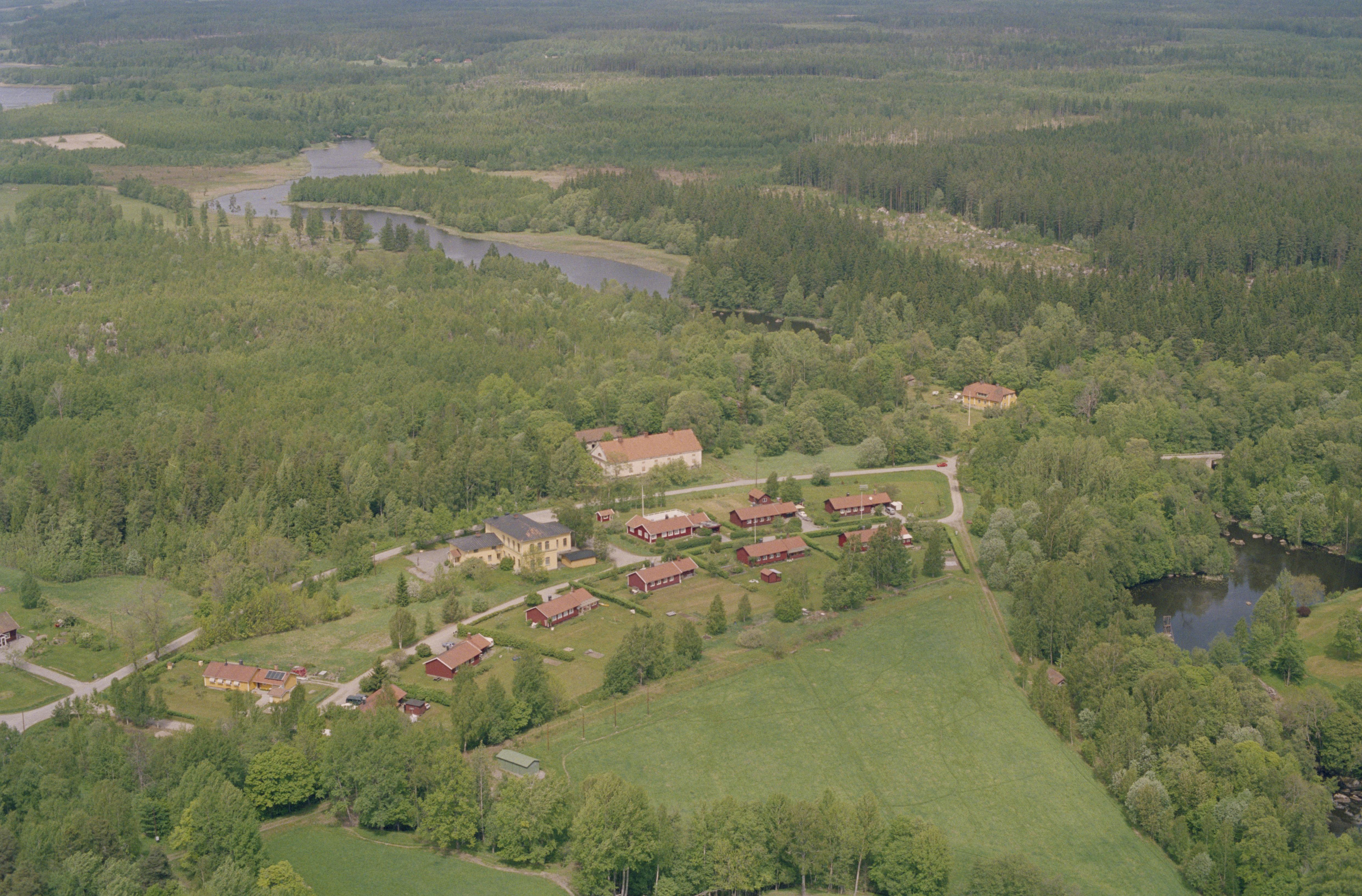 Beskrivning: Svanå bruk i Svartåns dalgång. Till höger hammarområde RAÄnr Haraker 77:1. Bilden är tagen mot (väderstreck): N