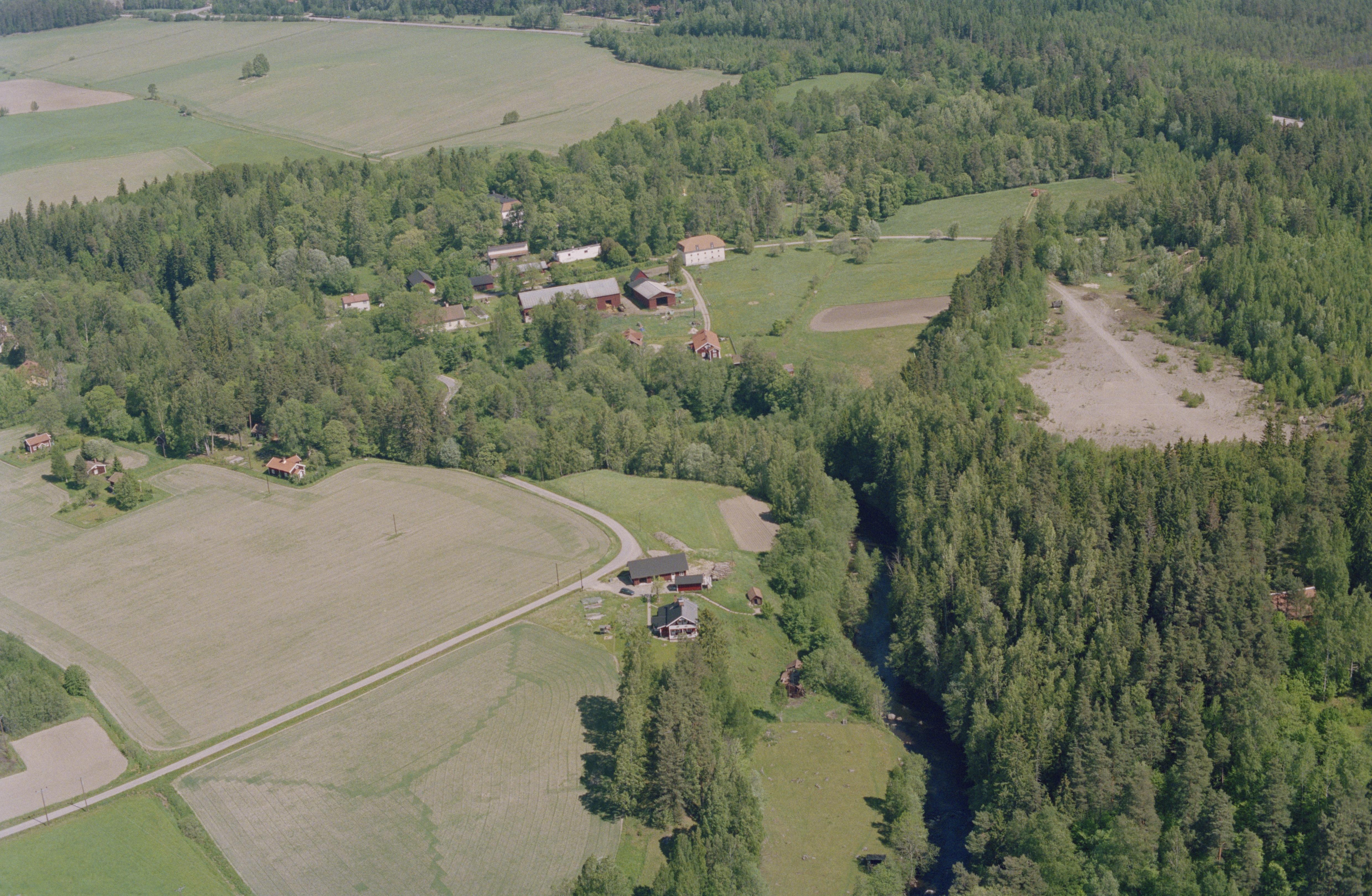 Beskrivning: Hedströmmens dalgång som markerar gränsen mellan socknen Kolsva (nere till vänster) och Hed (över och till höger). Nere till vänster Valbricka by med hammarområde RAÄnr Kolsva 224:1. Uppe till höger Bernshammars bruk och Bergshammars herrgård vid hammarområde RAÄnr Hed 9:1 m.fl. Bilden är tagen mot (väderstreck): NNO