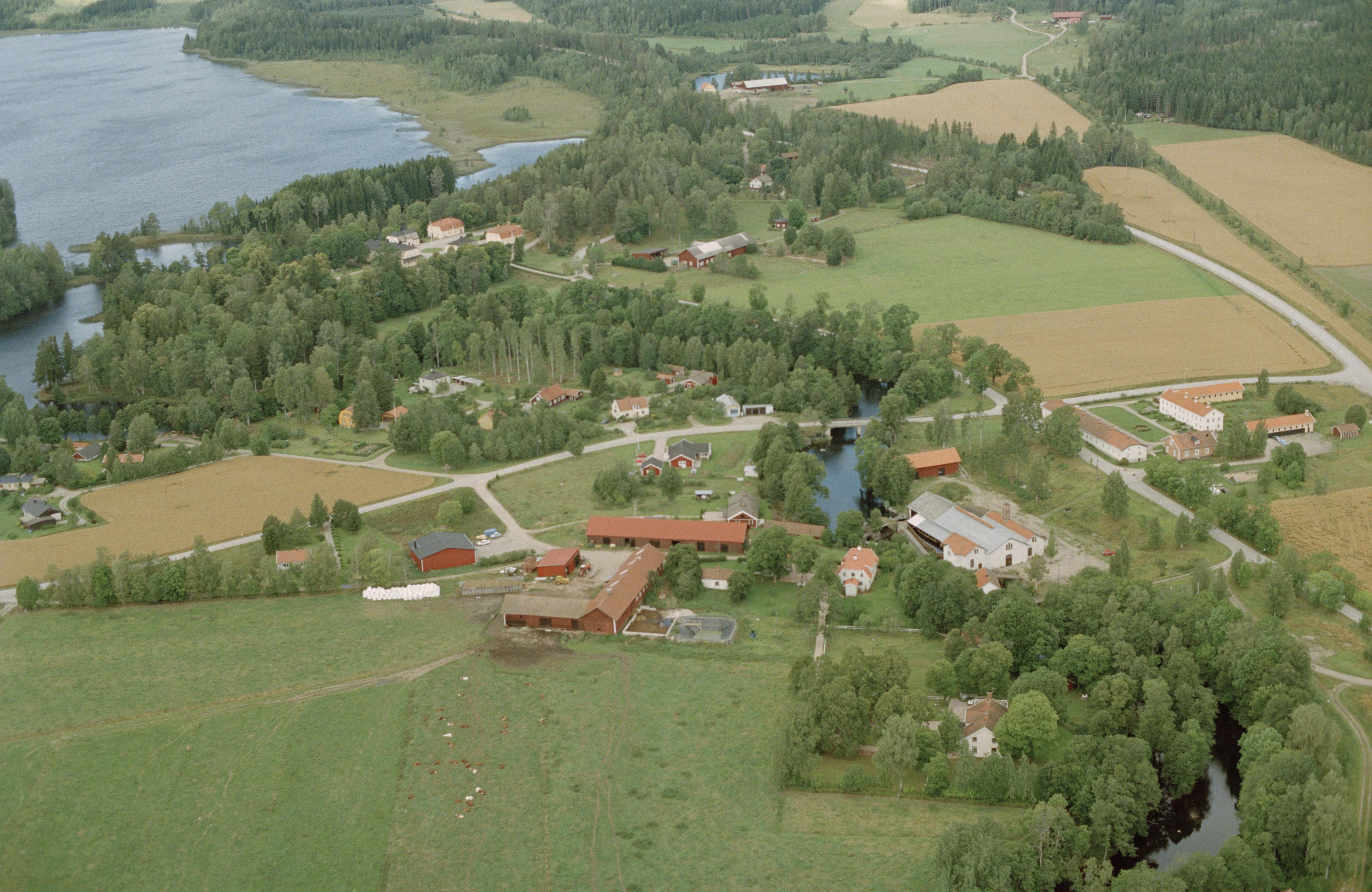 Beskrivning: Karmansbo bruk och byggnadsminne i Hedströmmens dalgång.. Till höger om bildens mitt hammarområde RAÄnr Hed 57:1, Karmansbo museum och Karmansbo kraftverk. Sjön Åndern uppe till vänster. Bilden är tagen mot (väderstreck): NNV
