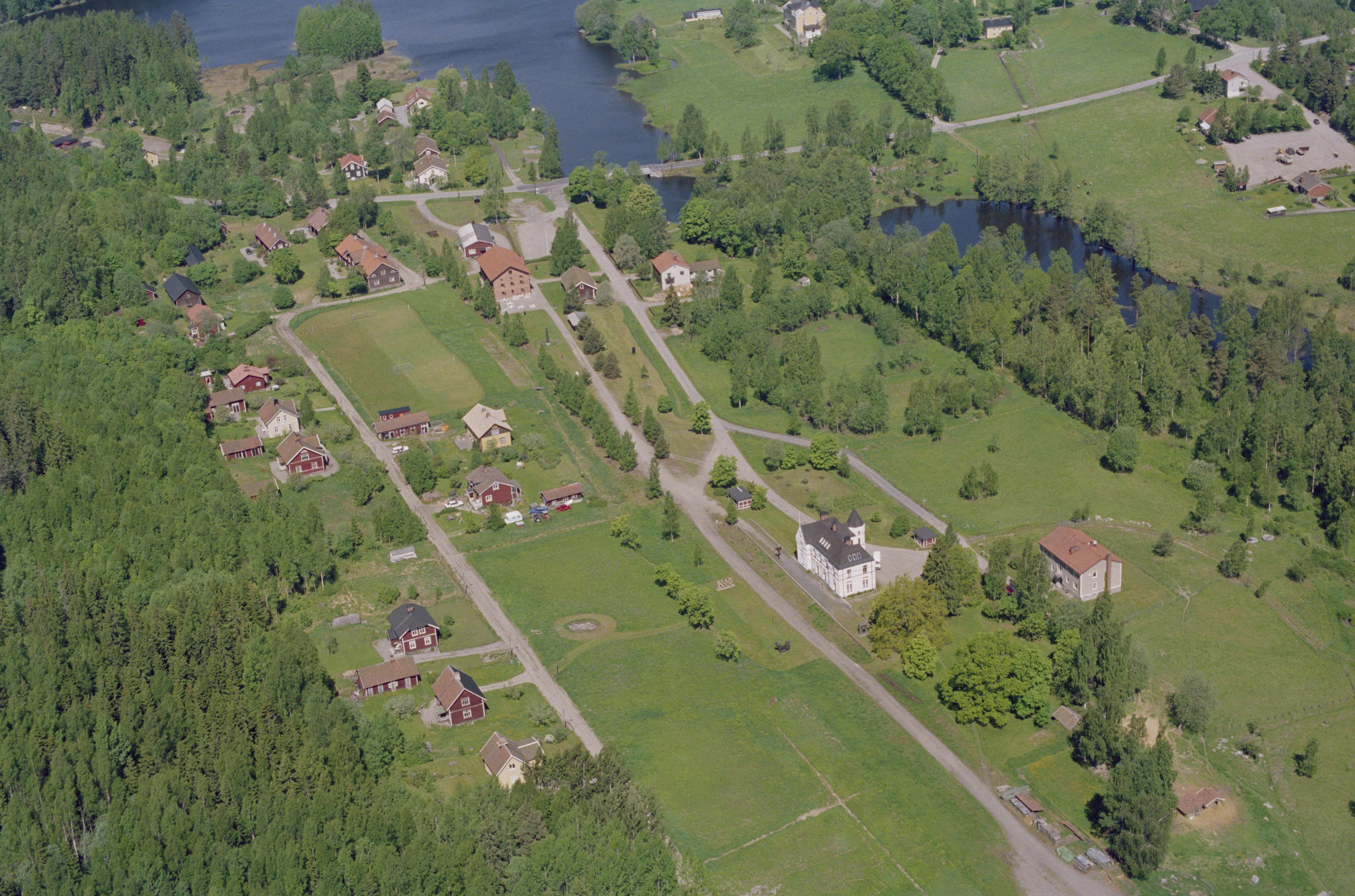 Beskrivning: Uttersbergs bruk i Hedströmmens dalgång. Hedströmmen markerar gränsen mellan socknen Hed (till vänster) och Skinnskatteberg (till höger). Vid bildens mitt hytt- och hammarområde RAÄnr Hed 15:1 och Skinnskatteberg 10:1. Bilden är tagen mot (väderstreck): N