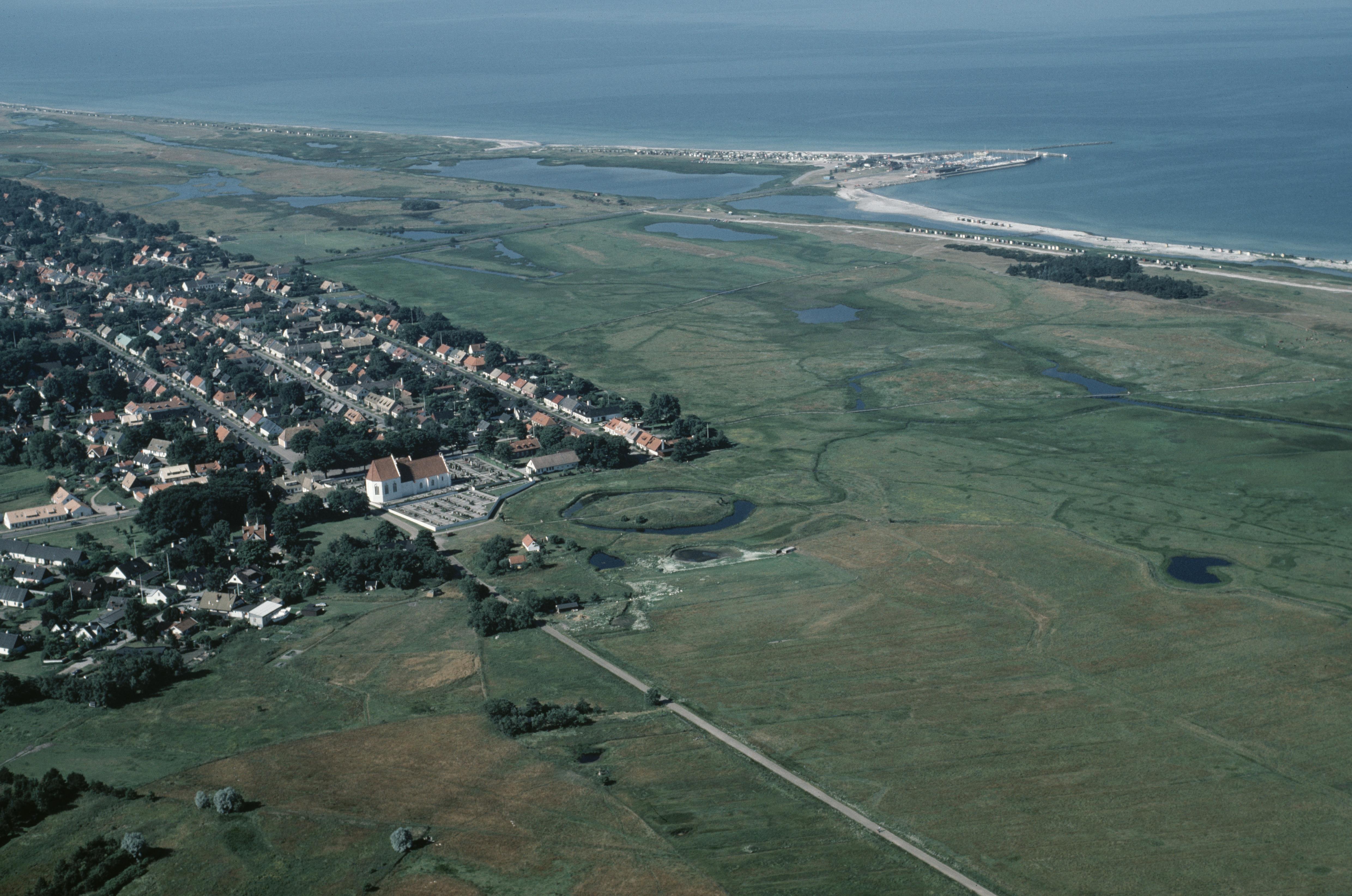Beskrivning: Skanörs kyrka och Skanörs borgruin RAÄnr Skanör m. Falsterbo 1:1. Bilden är tagen mot (väderstreck): SO