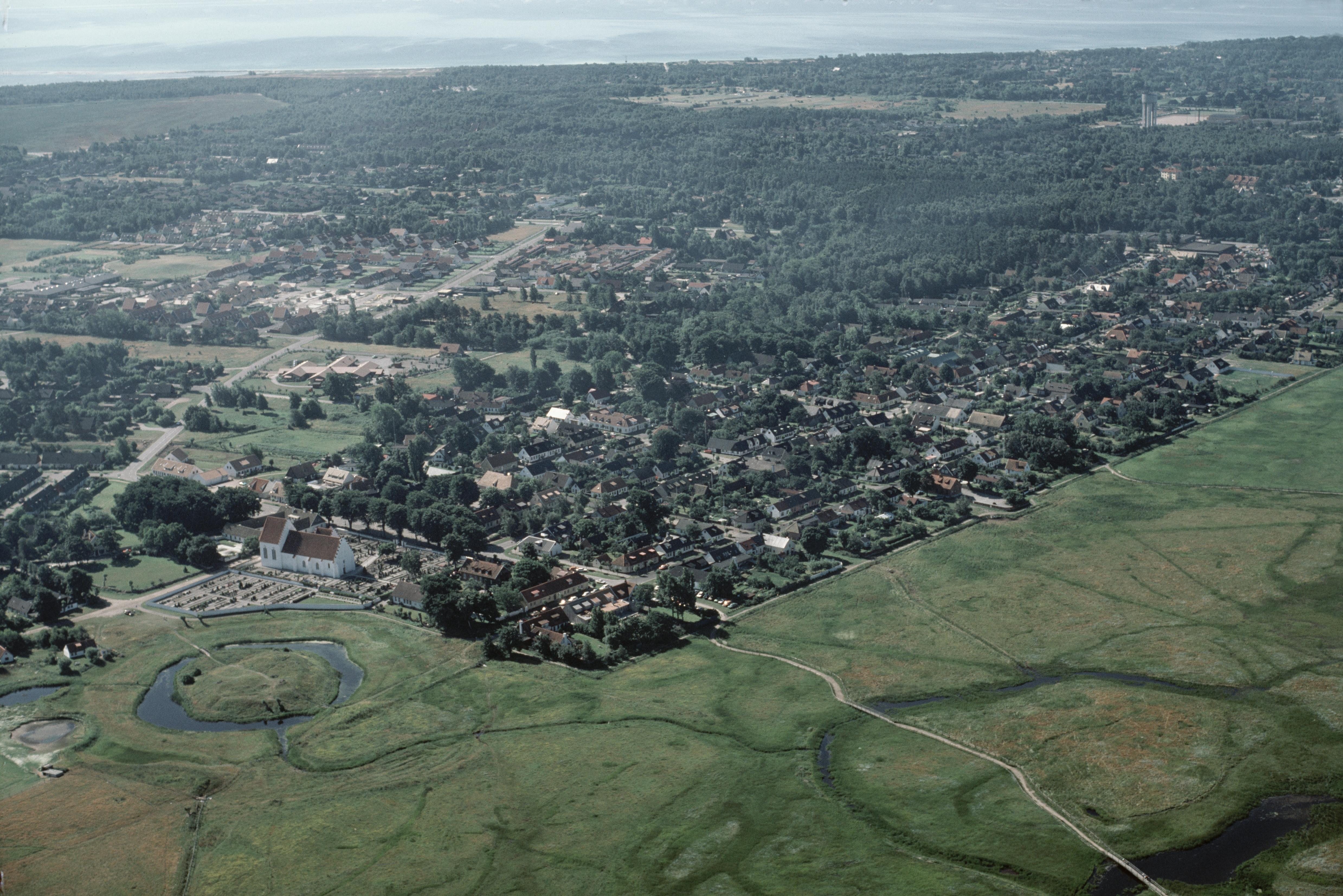 Beskrivning: Skanörs kyrka och Skanörs borgruin RAÄnr Skanör m. Falsterbo 1:1. Bilden är tagen mot (väderstreck): SO