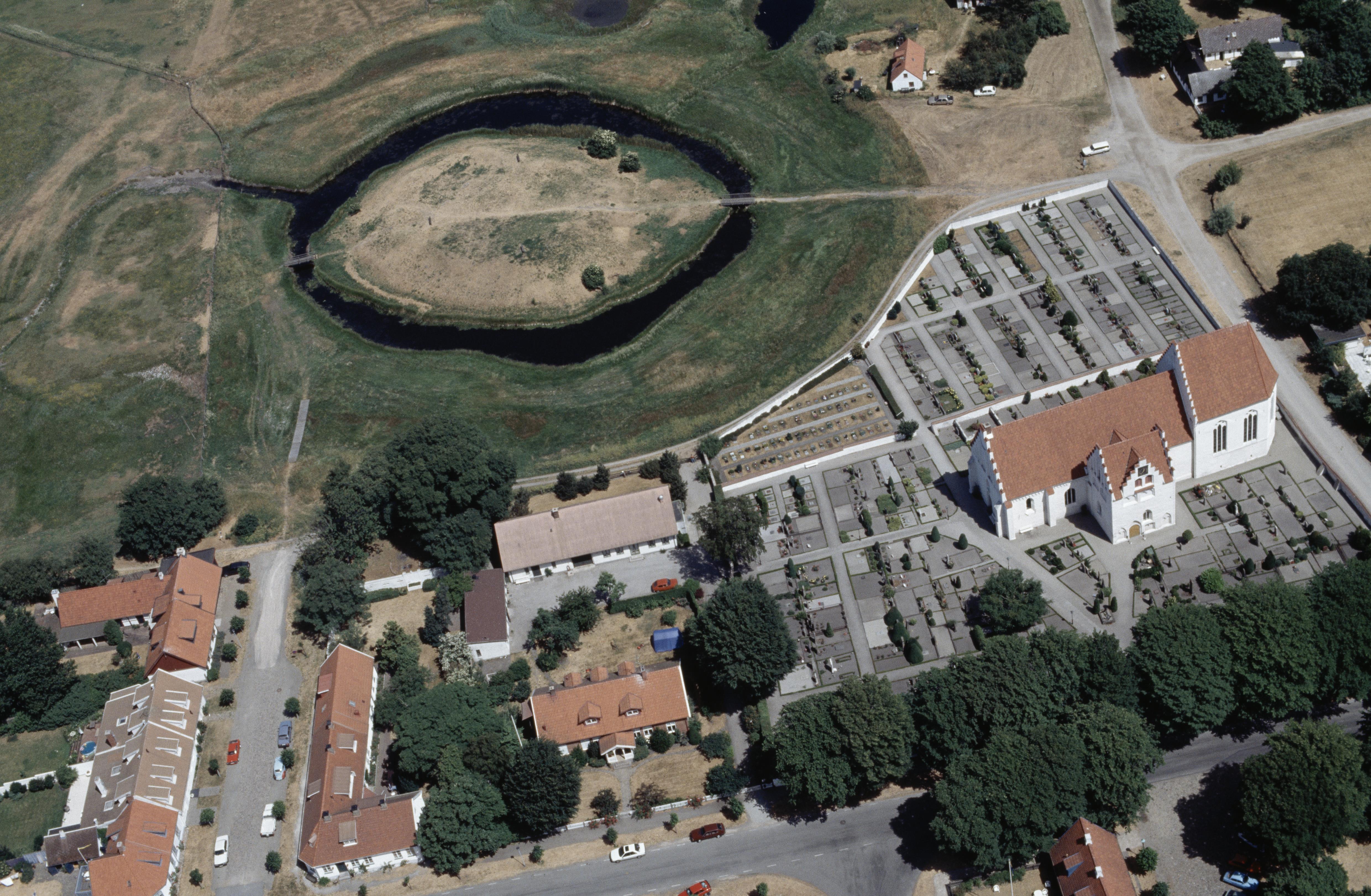Beskrivning: Skanörs kyrka och Skanörs borgruin RAÄnr Skanör m. Falsterbo 1:1. Bilden är tagen mot (väderstreck): NO