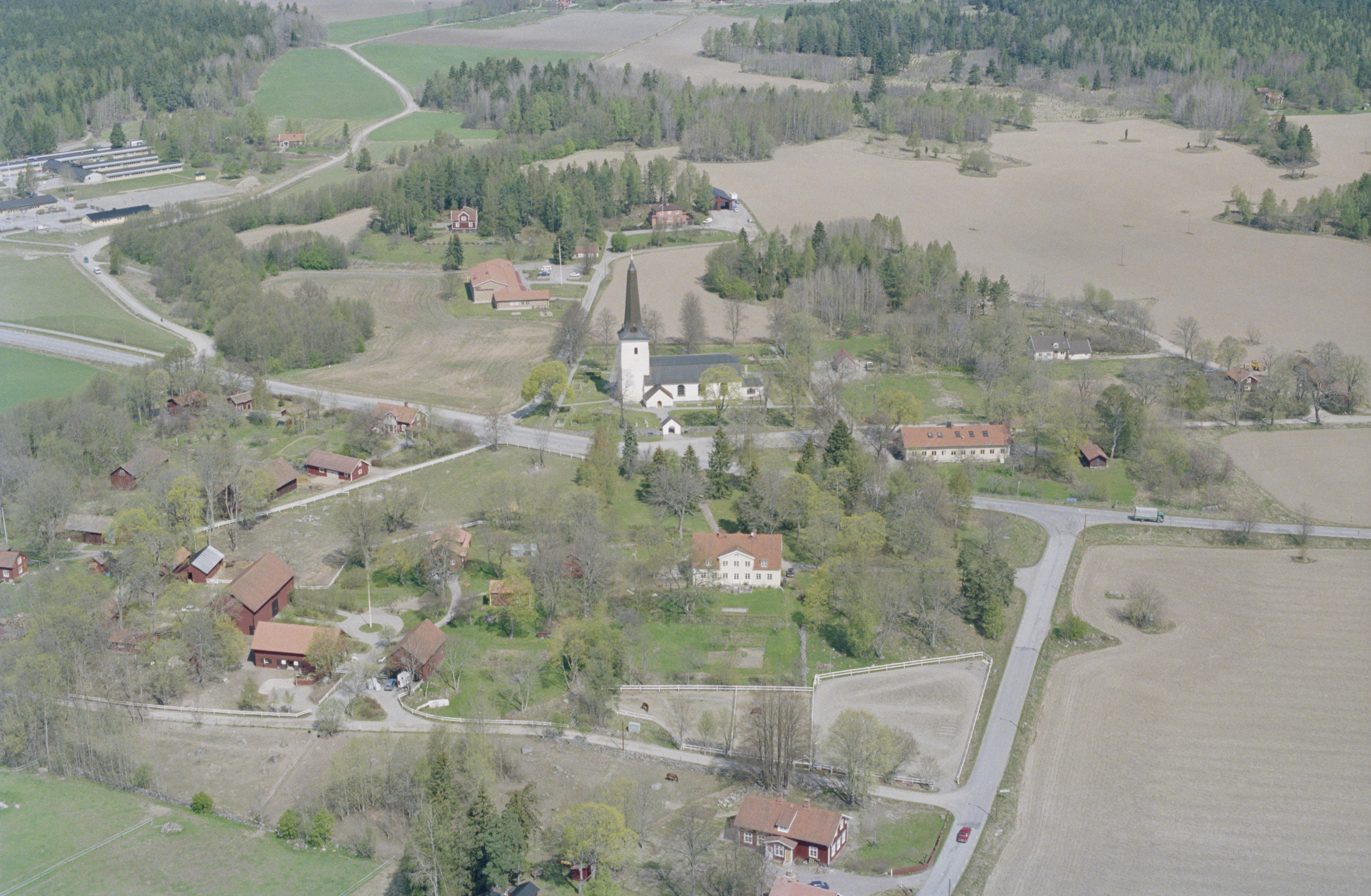 Beskrivning: Irsta tätort. Vid bildens mitt Irsta kyrka i Gullbobäckens dalgång. Bilden är tagen mot (väderstreck): N