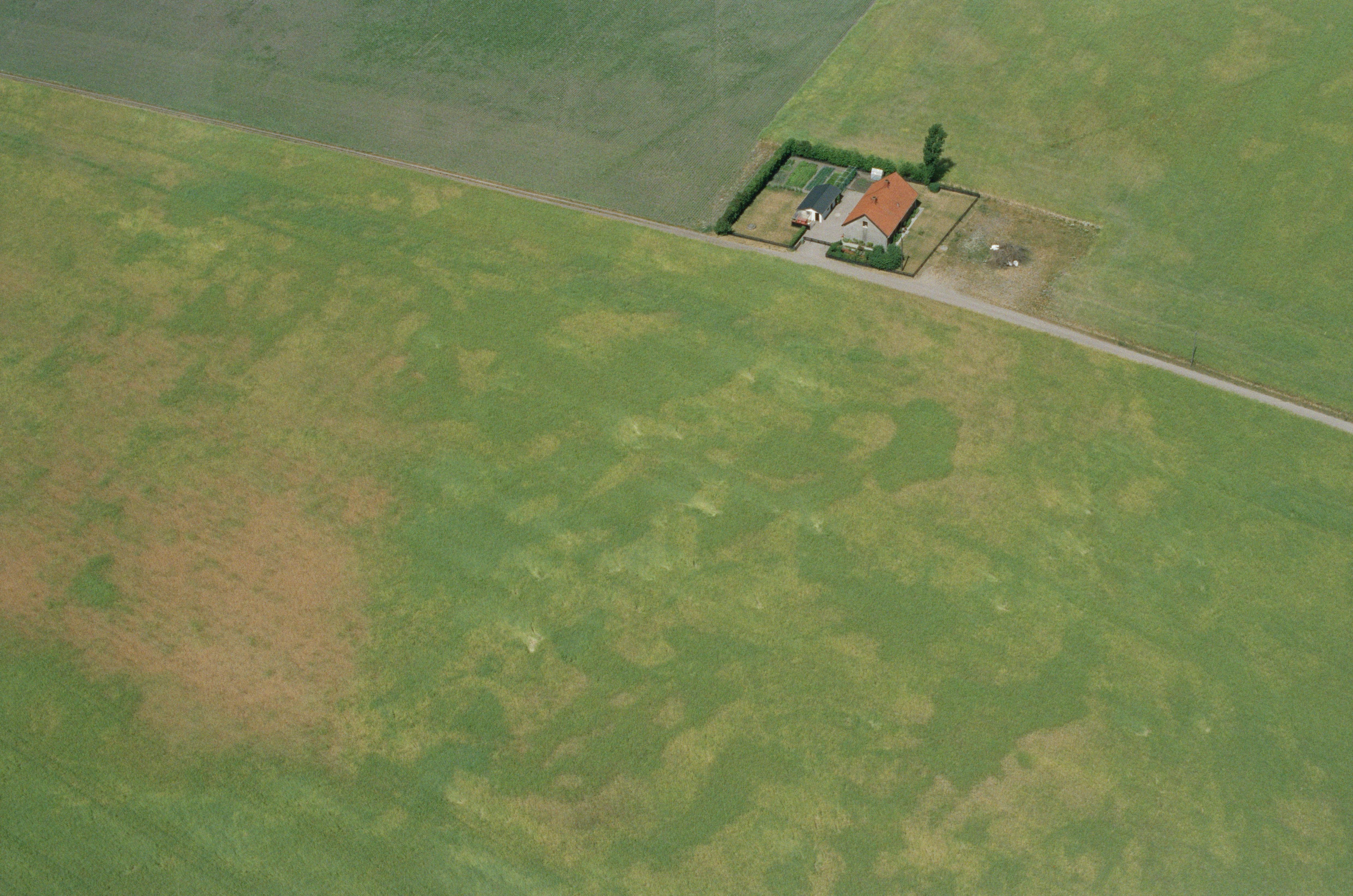 Beskrivning: Cropmarks i åker. Vid bildens mitt sammanförda fornlämningar RAÄnr Tygelsjö 52:1. I bildens nedre del boplats Tygelsjö 65. Bilden är tagen mot (väderstreck): NV