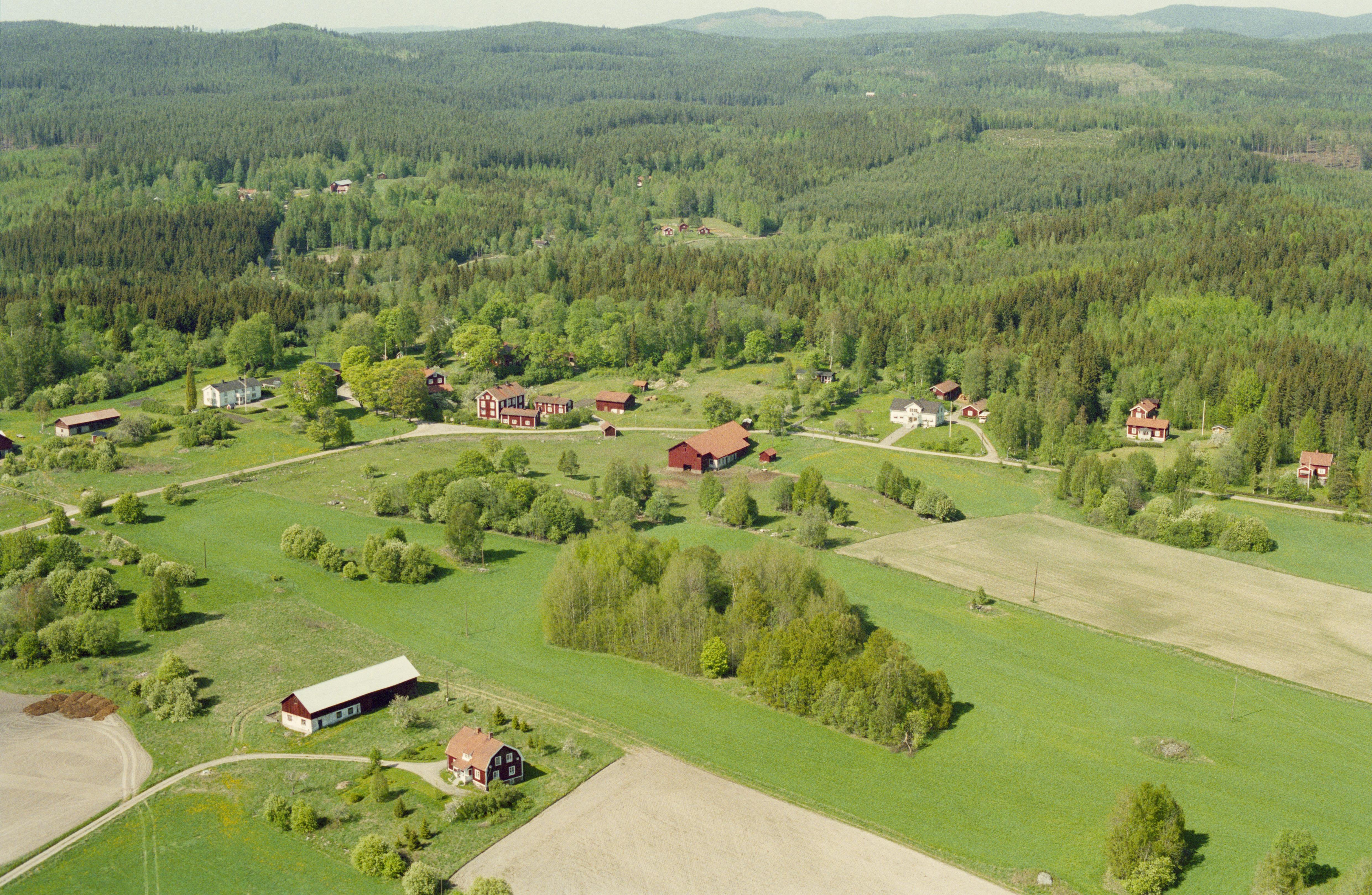 Beskrivning: Lindesby. Till vänster om bildens mitt gruvområde / gruvhål RAÄnr Järnboås 146:1. Uppe till vänster hyttområde RAÄnr Järnboås 4:1. I bildens övre del Björkbergsbackens naturreservat. Bilden är tagen mot (väderstreck): NNV