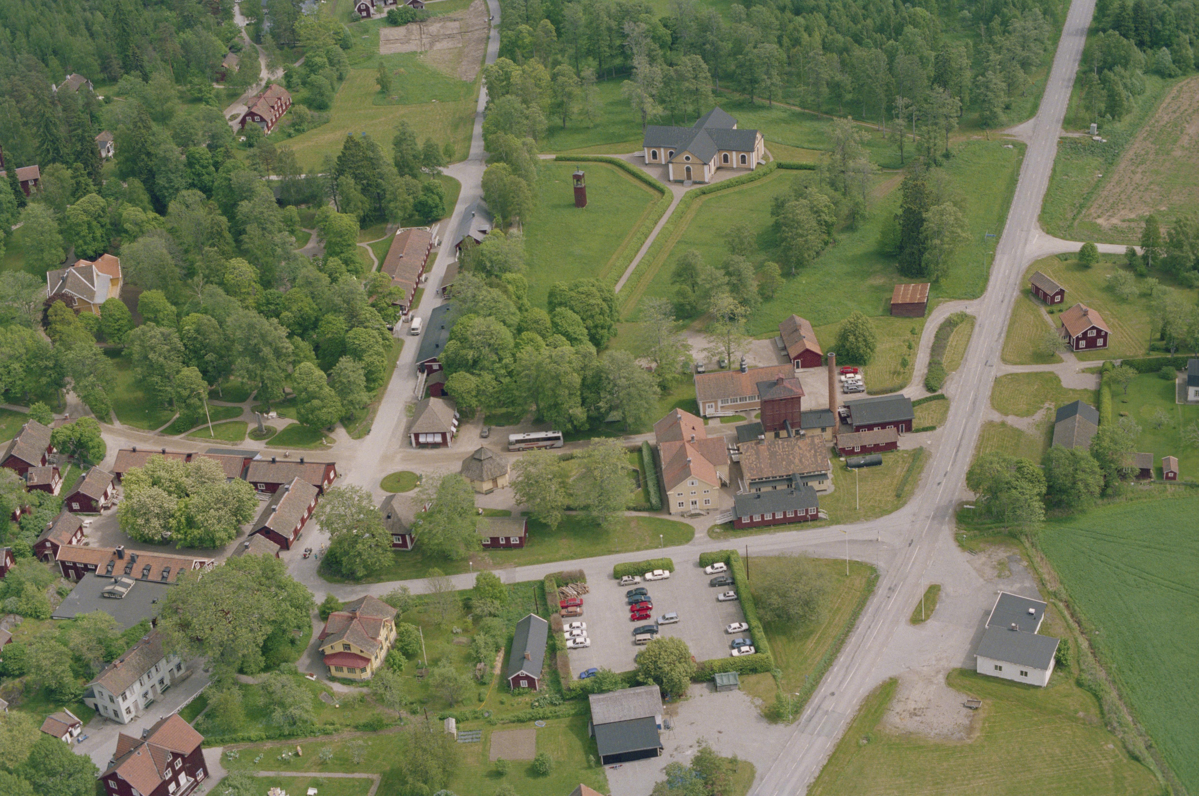 Beskrivning: Solingsbäckens dalgång. Kurorten Sätra brunn RAÄnr Kila 177:1 med hälsokällor RAÄnr Kila 9:1, 12:1 13:1, 14:1 m.fl. Sätra brunns kyrka i bildens övre del. Bilden är tagen mot (väderstreck): OSO