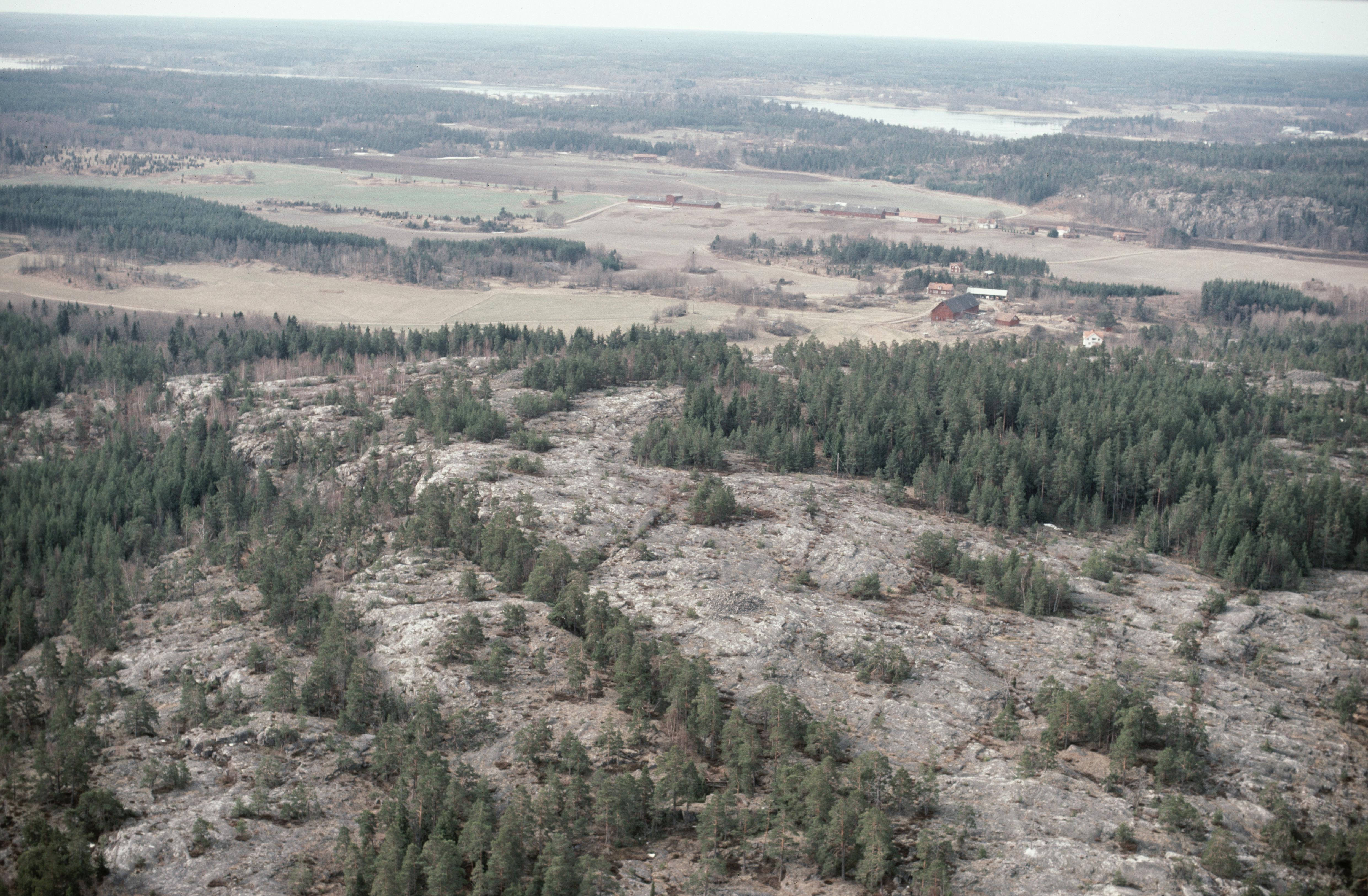Beskrivning: Kullen Stångerör med rösen RAÄnr Lofta 104:1, 105:1, 106:1 och 107:1 i norra delen av Brånestad. I bildens övre del Dvärgstad i Gamleby socken. Bilden är tagen mot (väderstreck): SV